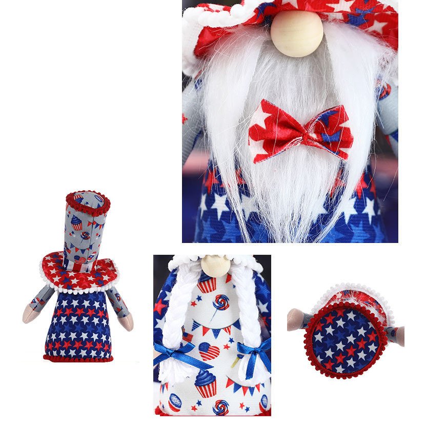 1.PACKAGE & SUITABLE SIZE: You will get 2 pieces of 4th of July patriotic gnomes with different designs. Inside the gnome hat is adjustable iron wire, the gnome hat is bend to fix the box.