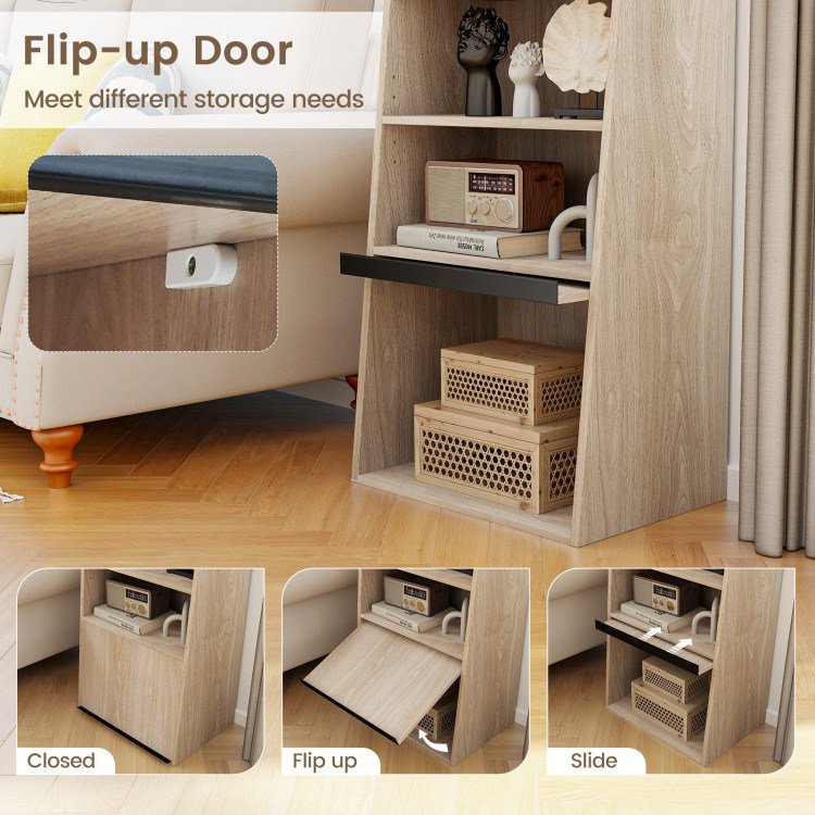 2.Lowest Tier with Flip-up Door: Transform your home with the sleek profile of the ladder bookcase, designed with a flip-up door on the lowest tier to create a hidden compartment for clutter-free living. The door will slide underneath the shelf and will not occupy your space when opened.