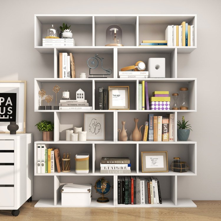 1.Functional Space Organizer: This 6-tier bookcase measures 75 inches high and provides ample and classified spaces for storage or display. With these cube compartments, you can better organize your stuff or collection, such as books, albums and trophies. The open shelves offer easy access to those frequently used things.