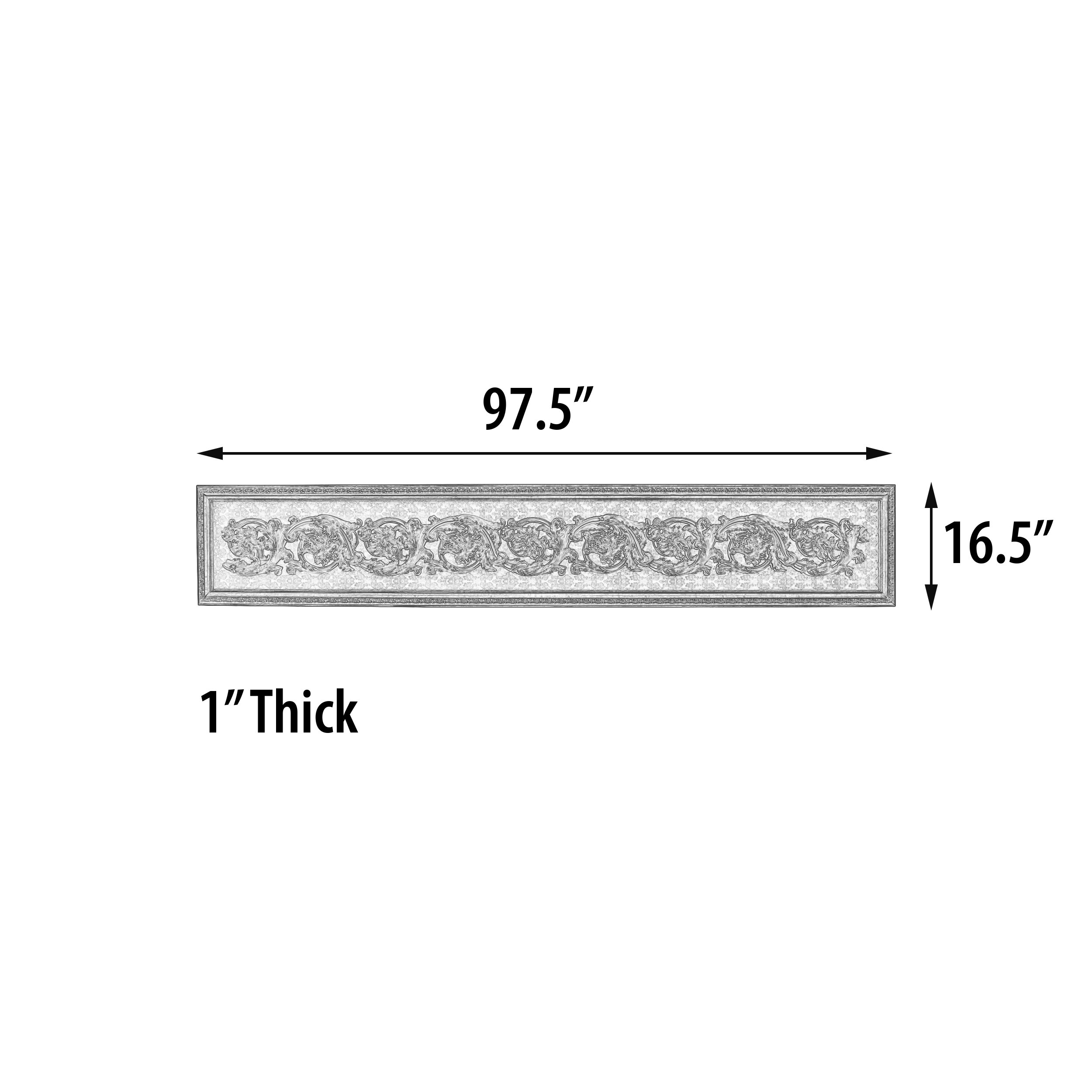 Long and beautiful this decorative wall accent comes prefinished with striking gold and beige accents with a beautiful acanthus leaf scroll detail running throughout the center. At 97.5” x 16.5” the rectangular wall medallion is a perfect doorway accent framing the opening gracefully with unique architectural detail. For larger applications the grand scale of the wall medallion could make for and elegant chair rail. Big on look but light on weight this decorative wall medallion are precision cast using durable polymers that are non-shrinking and 100% waterproof. Installation is as easy as securing the wall medallion to the wall with an architectural adhesive and finishing nails. Shipping fully assembled and prefinished this wall accent provide instant architectural detail to otherwise plain spaces. Add beauty to any area of your home with this amazing decorating solution that gives you the look of custom crown molding trim work at an affordable price.