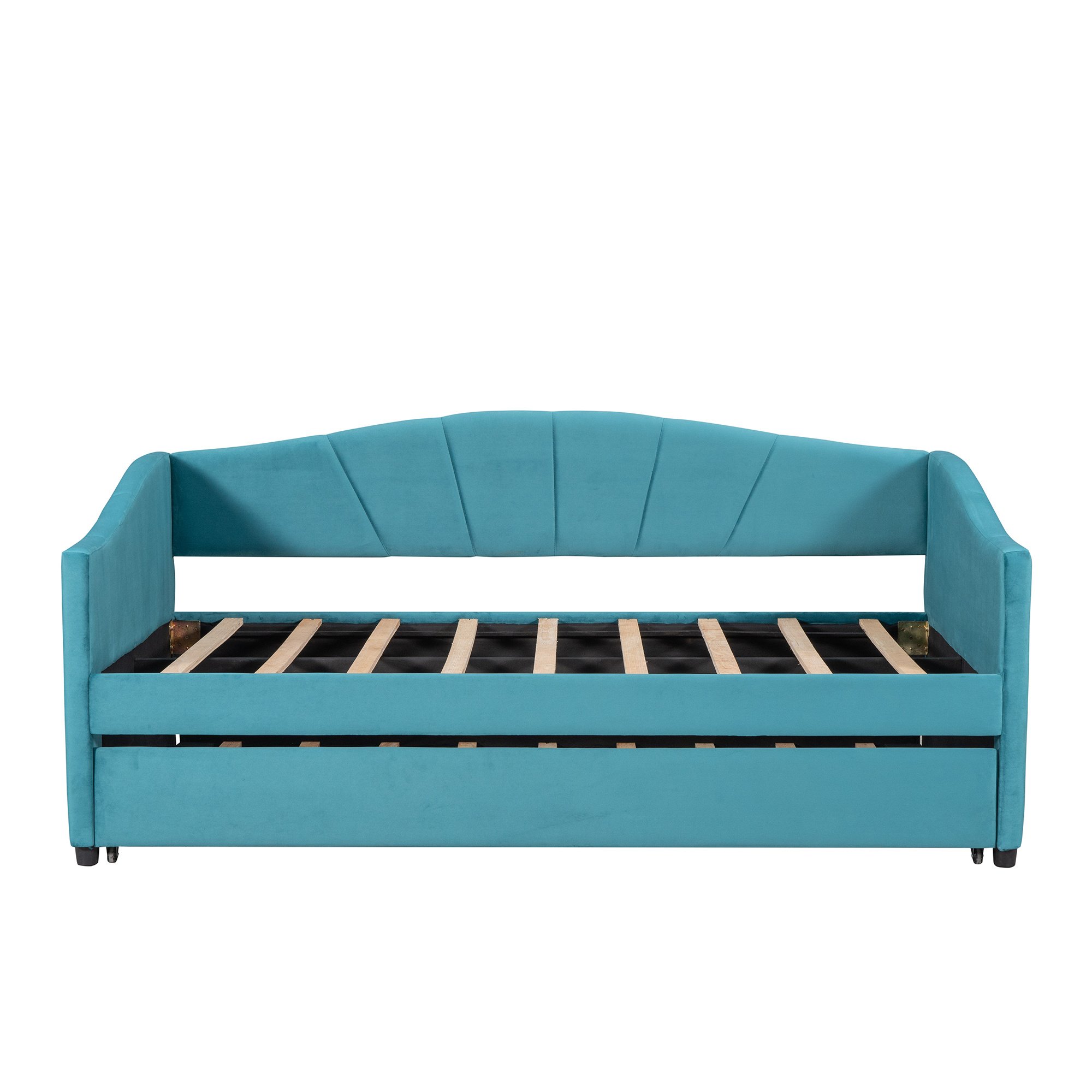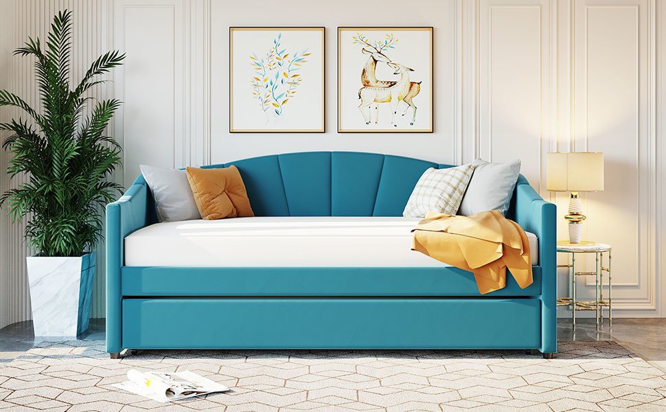 1.[Elegant design] Elegant style Upholstered in carefully-selected velvet fabric, this daybed not only suits any home decoration, but is timeless in its design. The soft textile bedhead creates coziness, while the single color of the design creates versatility.