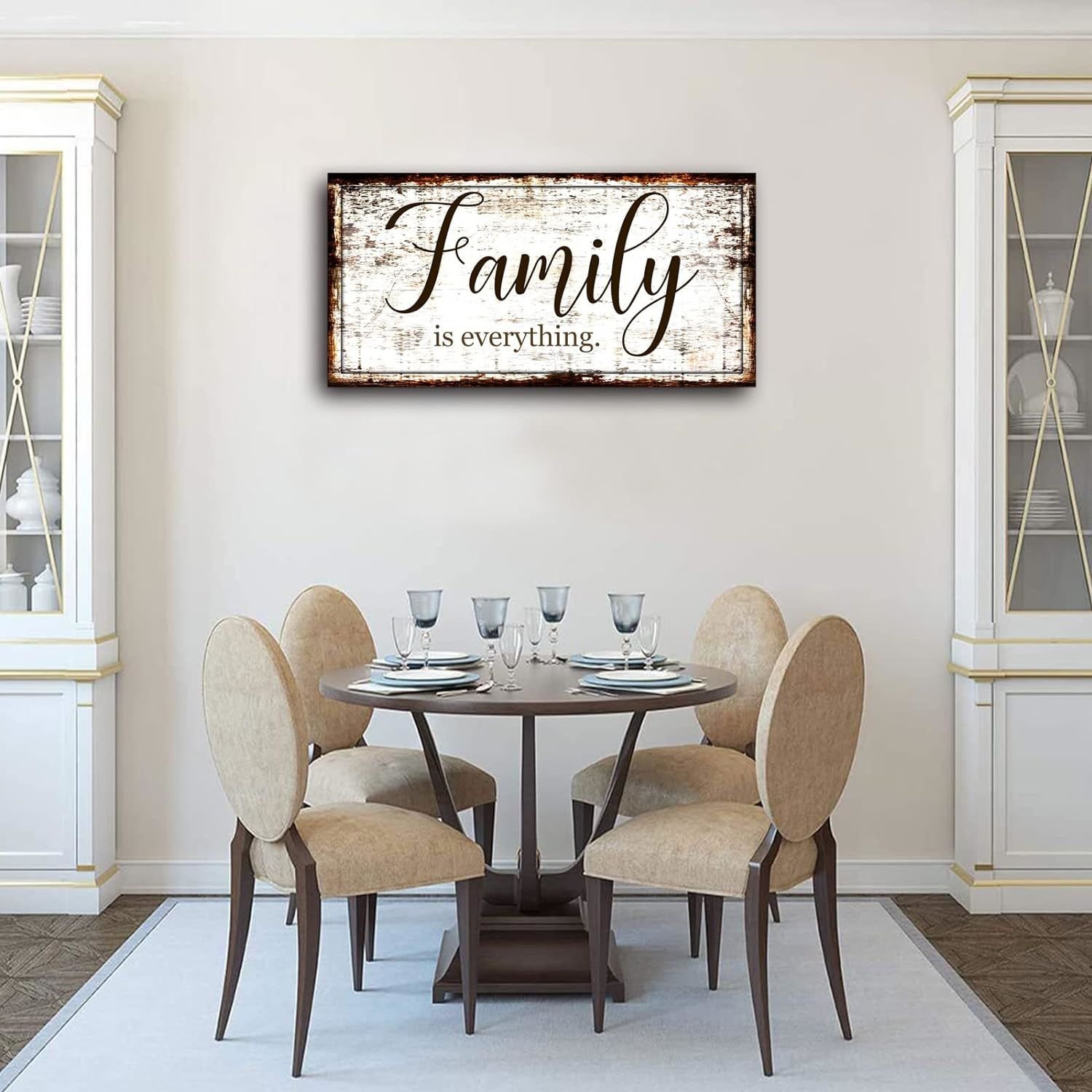 2.Family Signs for Home Decor Size: 20inchesx40inches.The Print Word:"Family is Everything",words to live by which will impress your family and friends.Living room art wall decor gathers everyone around with a heartfelt quote!