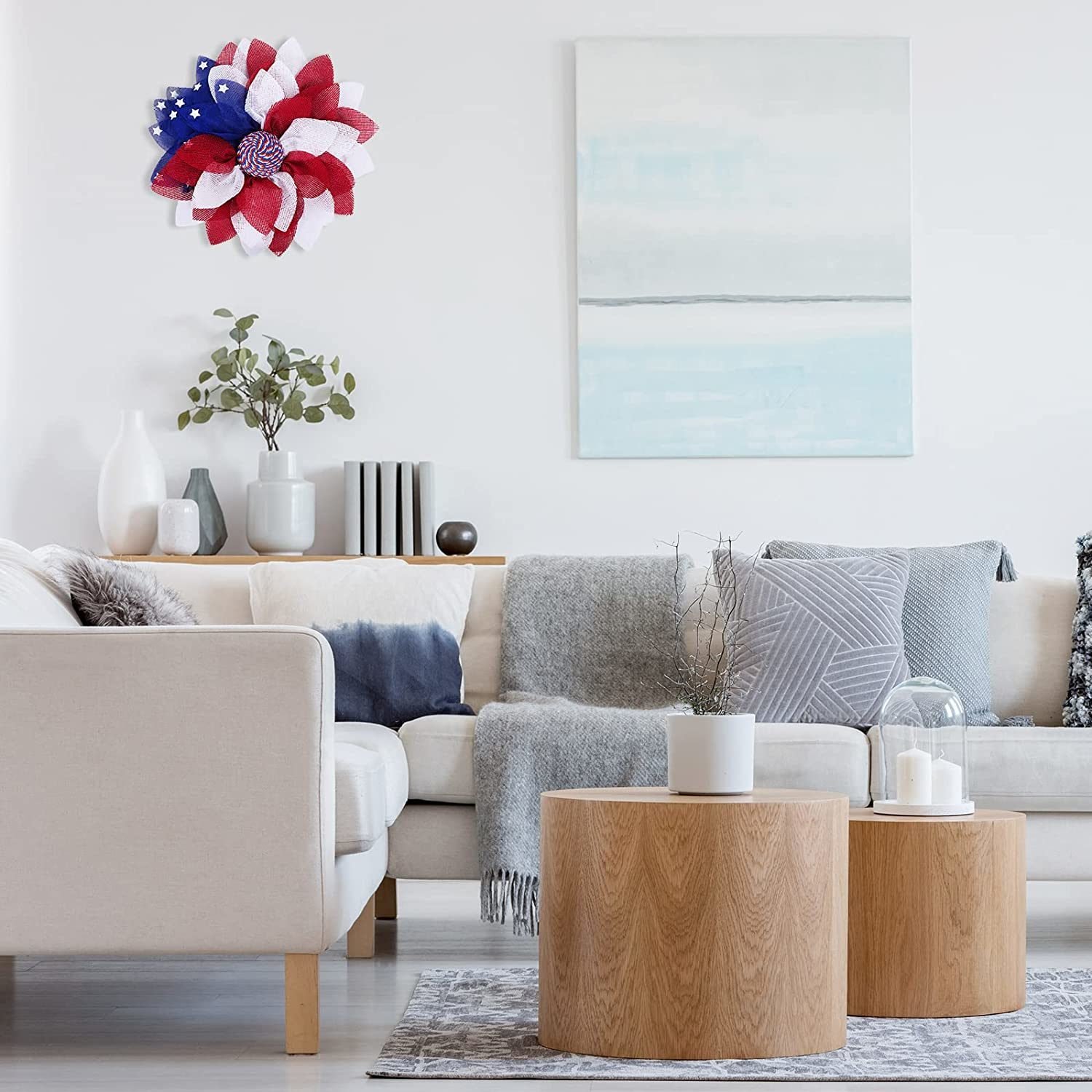 1.What You Will Get - 1 patriotic wreath bow is included in the package, the exquisite wreath are indispensable adornment for decorating your home and party on Independence Day.