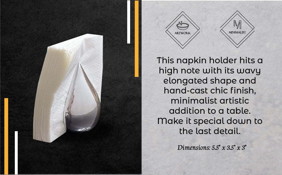 ARTWORK. This napkin holder hits a high note with its wavy elongated shape and hand-cast chic finish; minimalist artistic addition to a table. Make it memorable down to the last detail. Choixe's napkin holder is the finishing touch every kitchen/table needs.
