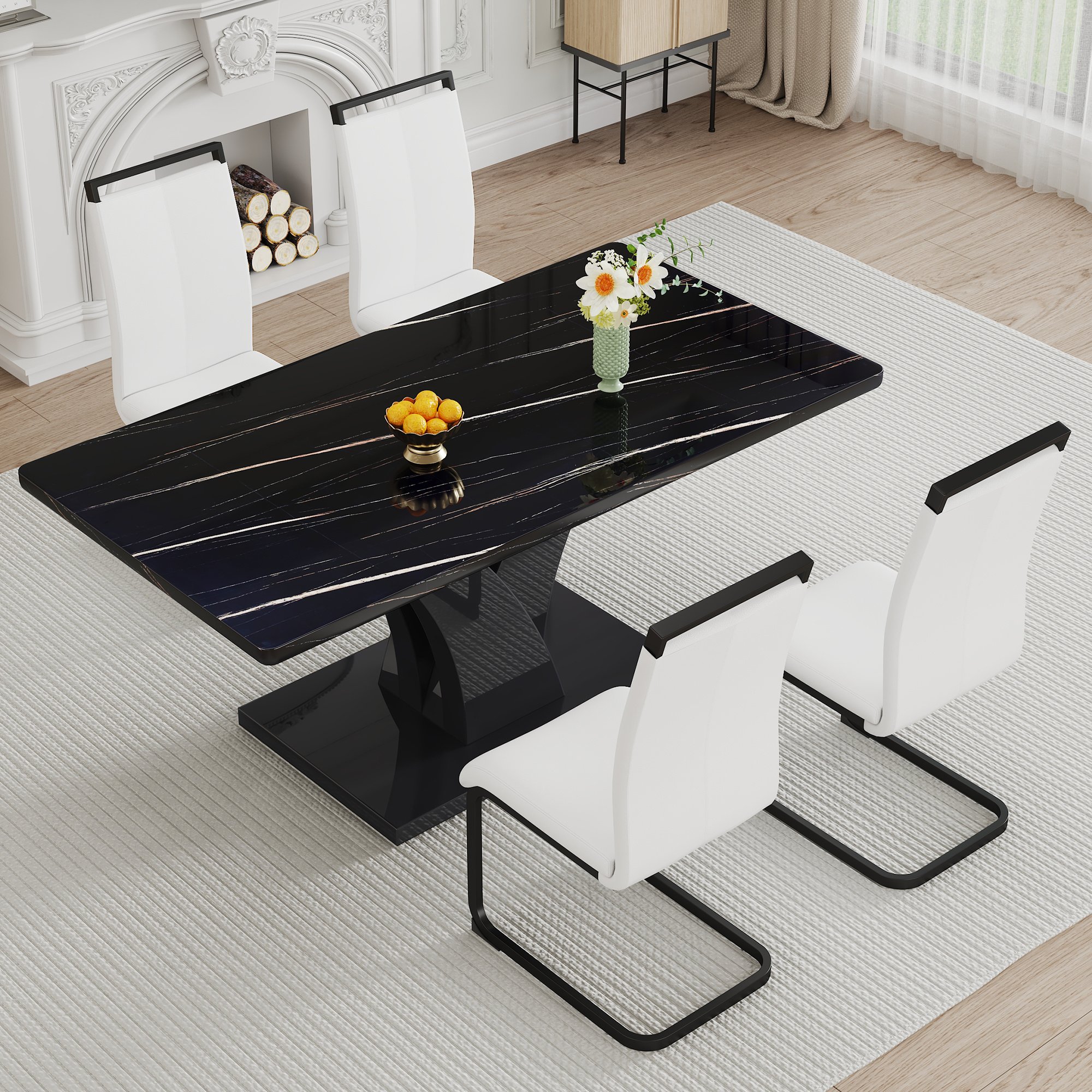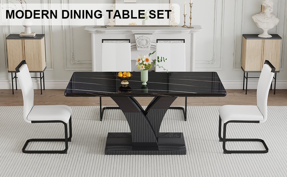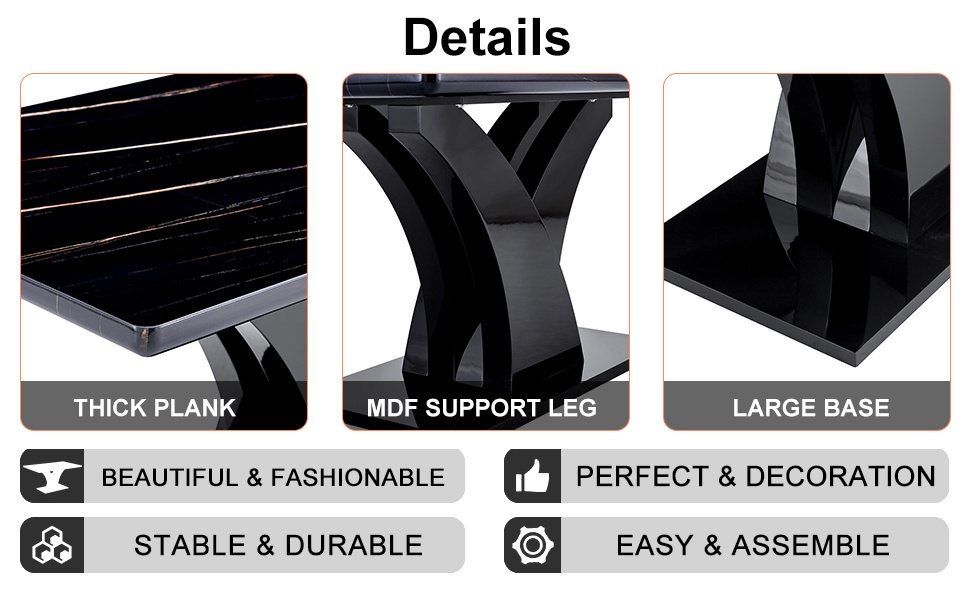 • Sleek Design: Contemporary dining table with a stylish black tabletop and sturdy black MDF legs.