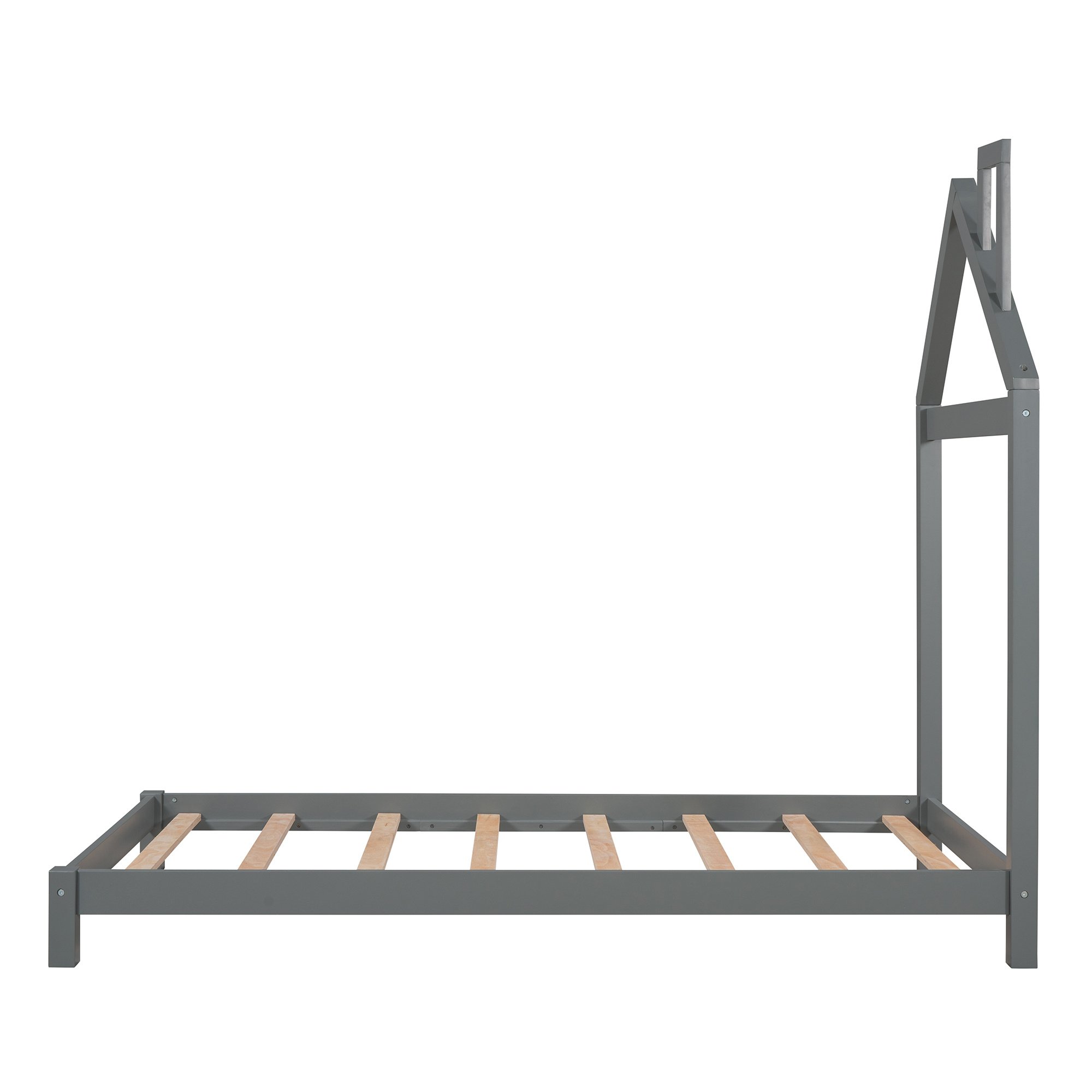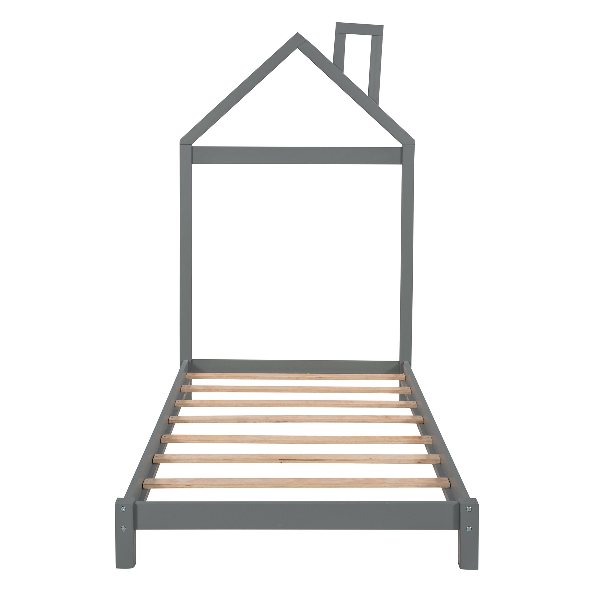 Twin Size Wood Platform Bed with House-shaped Headboard