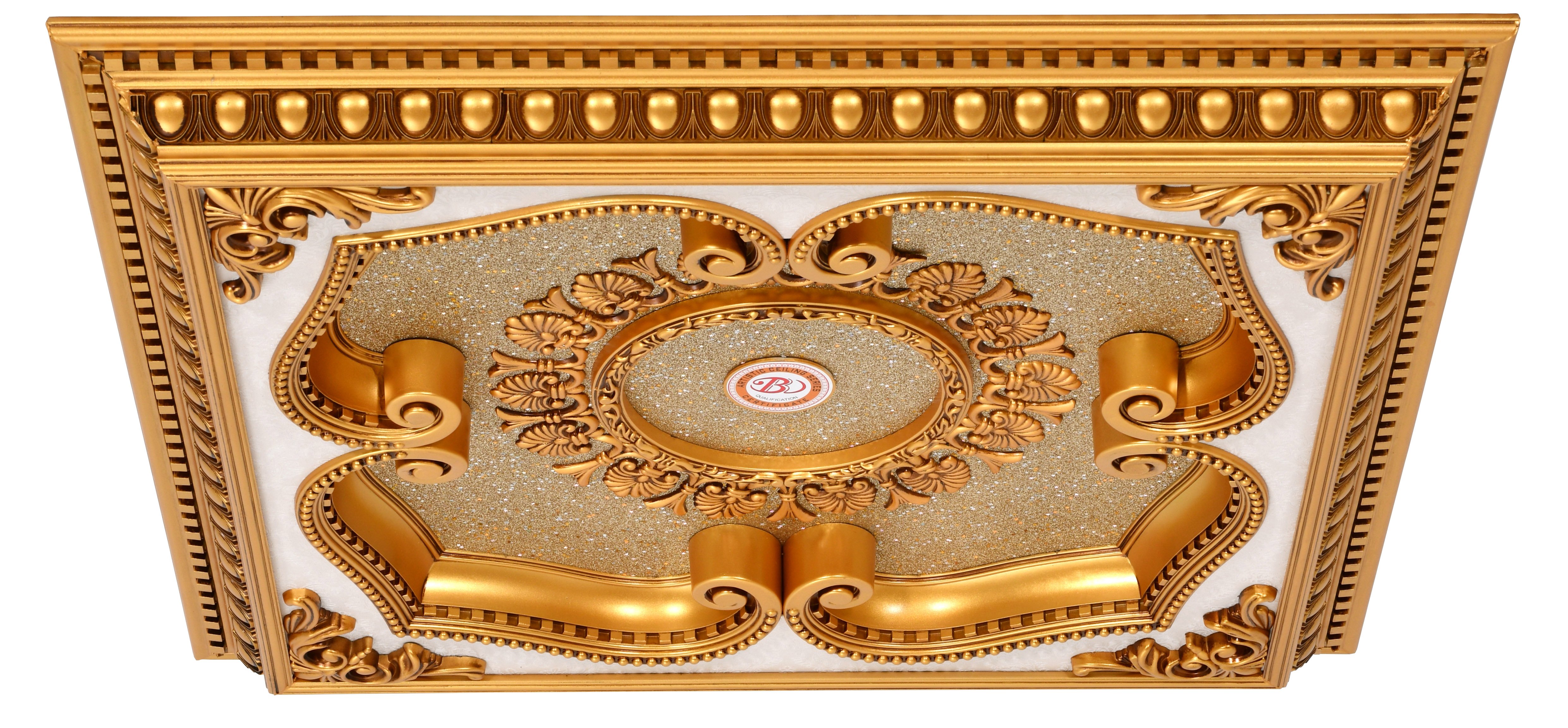 Add a touch of elegance and sophistication to your space with the Beige and Gold Clover Square Chandelier Fan Ceiling Medallion. This exquisite medallion measures 32 inches in width and height, with a depth of 4 inches, making it an ideal size to complement a variety of chandeliers or ceiling fans. Featuring a beautiful beige background accented with gold clover detailing, this medallion exudes a classic charm that enhances any decor style, from traditional to contemporary. The intricate clover pattern adds a touch of luxury and intricacy, making the medallion a striking focal point in your room. Whether you're aiming to elevate the style of your dining area, living room, or bedroom, this ceiling medallion provides the perfect finishing touch. It not only enhances the aesthetic appeal of your lighting fixtures but also adds architectural interest to your ceiling, creating an elegant ambiance in your space. Easy to install and designed to fit seamlessly with various interior designs, the Beige and Gold Clover Square Chandelier Fan Ceiling Medallion is a versatile and stylish choice for those looking to enhance their home's decor with a touch of timeless elegance and refined beauty.