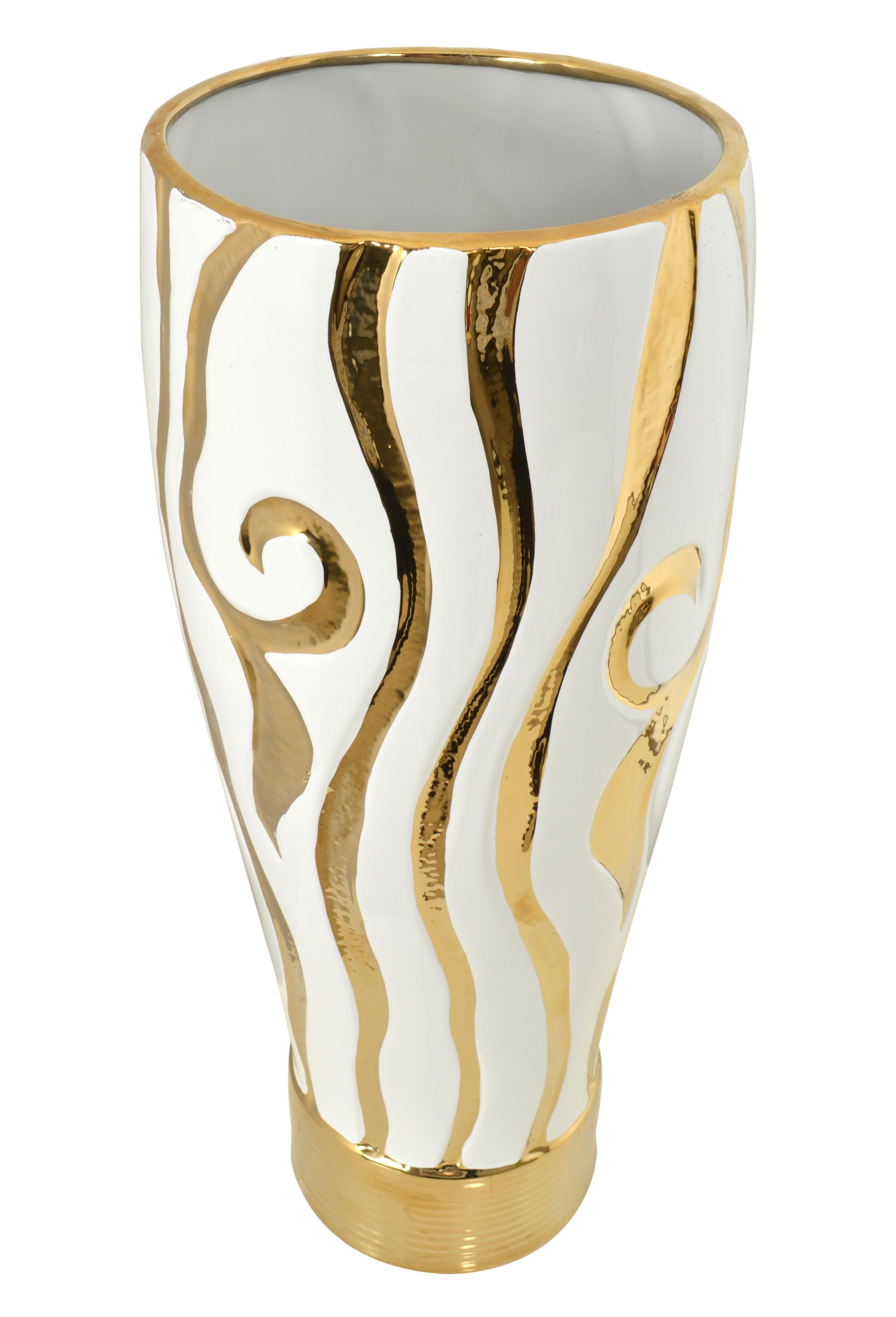 The Golden Zebra With White Vase 20 Inch offers a striking contrast. Hand cast in Porcelain with gold plating. This vase offers a wide variety of decorating options from Transitional to Contemporary. Often ordered in pairs for balance.