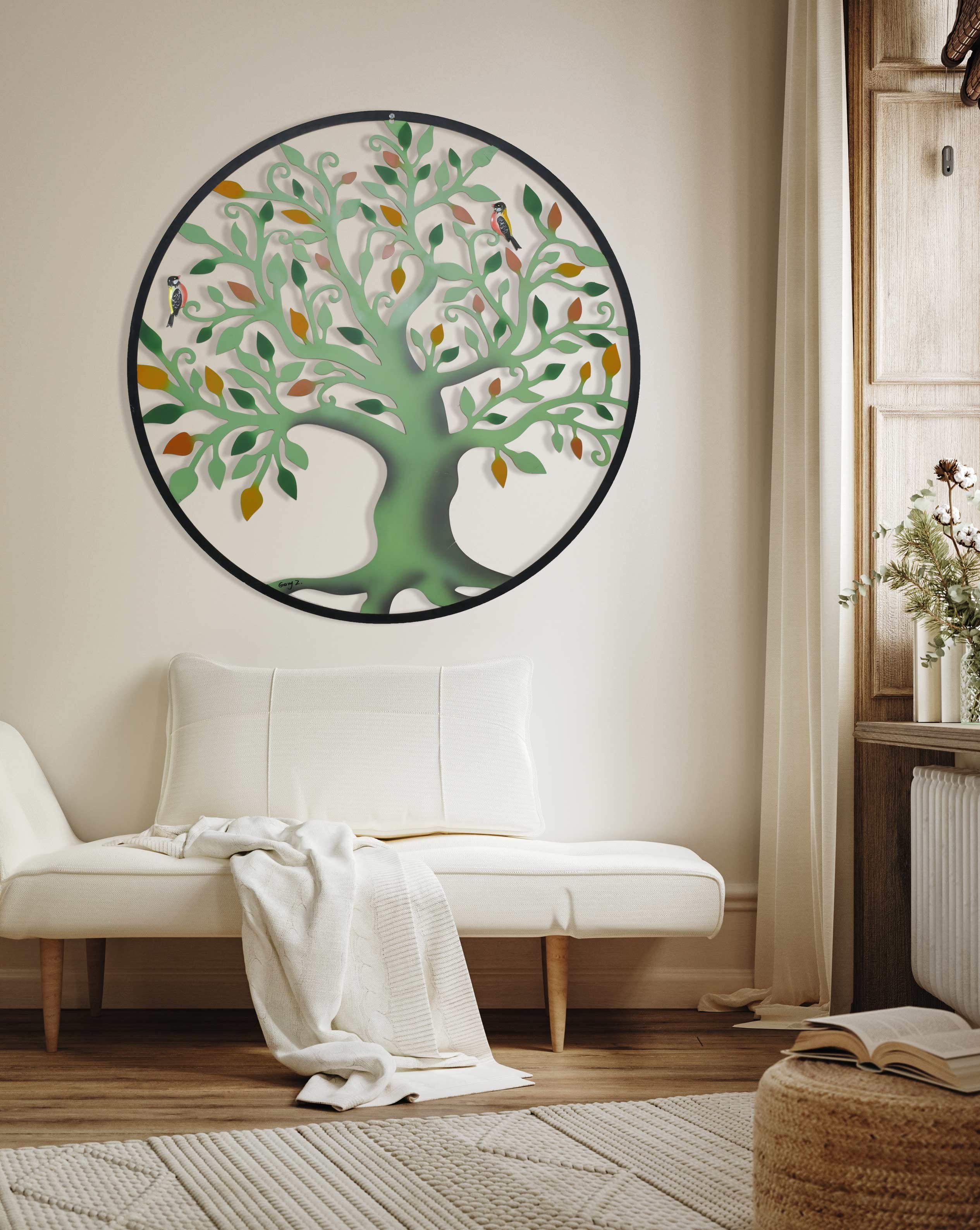 Enhance your space with our 38-inch "Tree of Life" Hand-Painted Wall Decor. Crafted from durable iron, it features a captivating Tree of Life design enclosed in a circle. Meticulously hand-painted for depth and charm, it symbolizes vitality and growth. Easily hang this art piece to transform your space.