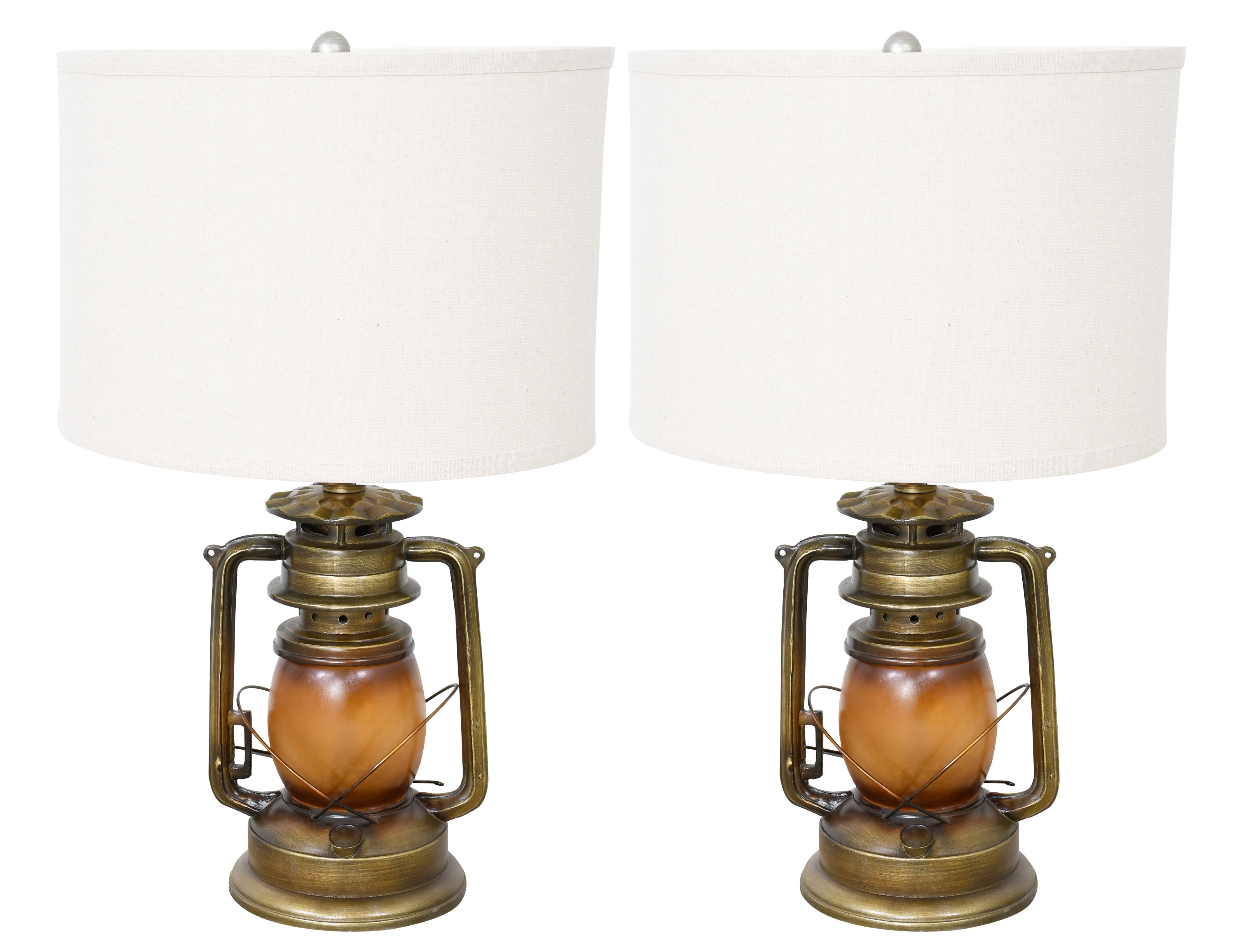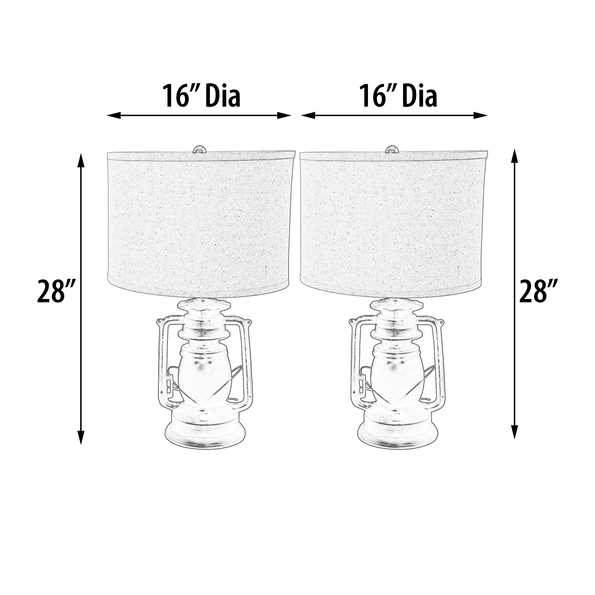 At 28 " tall The Lantern Lamps are sold as a set of 2. A very popular lamp from our growing American lodge collection of products. The design depicts a lantern beneath a fitting beige linen shade which brings the base and shade together nicely. The finishing is all hand done by artists and further the final authentic looking creation of the lantern lamps. This offering will fit perfectly in and further enhance the interior design of a western style, rustic, mountain, home, lodge or business. Hand made in durable polyresin and metal. The lamp is 110 volt, UL listed and use 1 standard E26/E27 based up to 100 watt bulb. Bulbs are not included. Consider pairing with the matching Lantern Floor lamp from the collection. Material: Poly Weight Lb:7.7 Bulbs:1 Bulb Type: Household Led Light Bulb 110V E27 Watt :150W Switch:Type“A”+Led Product Ul :Yes Wiring Ul :Yes Socket Ul :Yes Assembly :Yes