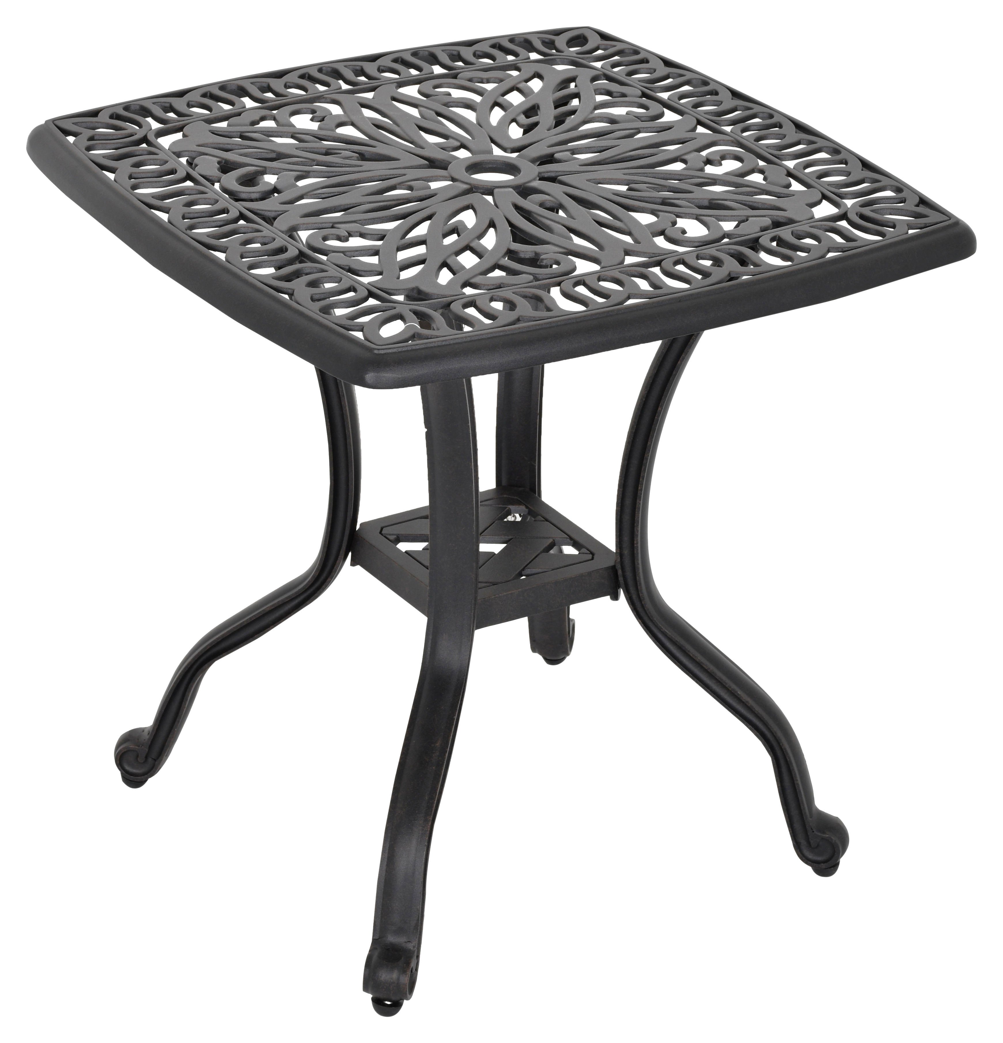 Enhance your outdoor living space with the Grand Bonaire Weave Side Table from Bridgeton Moore. Part of the exquisite Grand Bonaire Weave Collection, this side table offers both functionality and style. Crafted with meticulous attention to detail, the side table features a sturdy cast aluminum frame adorned with intricate hand weaving, adding a touch of sophistication to any outdoor setting. Its scrolling elements and bronzed finish exude elegance, making it a perfect complement to your outdoor seating area. Versatile and practical, the Grand Bonaire Weave Side Table is ideal for holding drinks, snacks, or decor items while you relax outdoors. Its compact size makes it easy to place beside your favorite outdoor seating piece or lounge chair. Light assembly is required for set up the process is straight forward, and you will be enjoying the end table in no time. Backed by Bridgeton Moore's commitment to quality, it boasts a fully welded aluminum frame for long-lasting stability and durability. Complete your outdoor oasis with the Grand Bonaire Weave Side Table. Explore the full collection today and elevate your outdoor living experience."