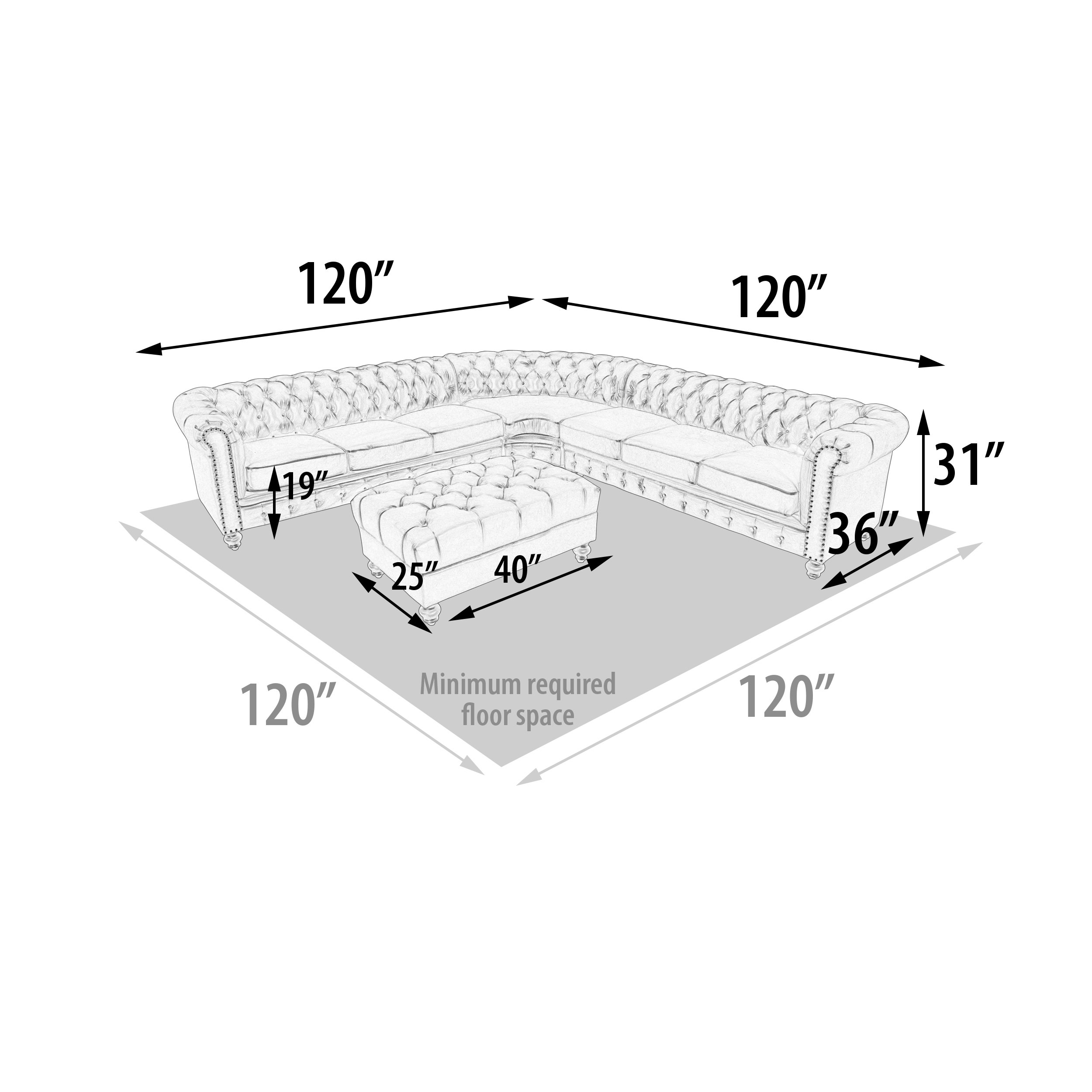 Classic Chesterfield Red Sectional with Ottoman(KIT)