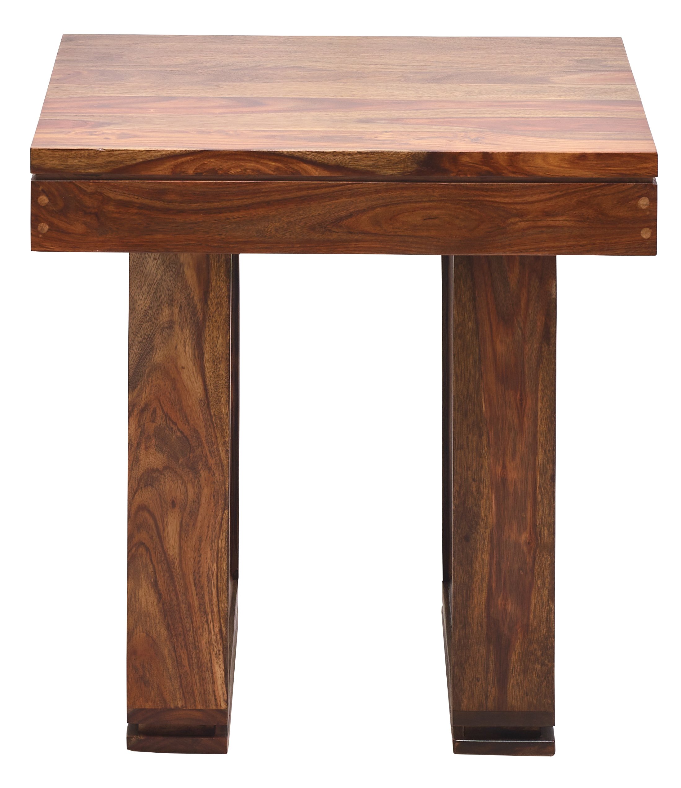 The Cinnamon Amber Side Table 24 Inch Solid Sheesham Wood Hand Made. This stylish clean occasional table offers a modern organic design with its subtle modern angles and linear lines defining the substantial solid wood planks. Customers often choose this Collection for its spectacular finish affects achieved in the special Sheesham, wood used, also known as rosewood or palisander, a sustainable tropical hardwood, famous for its rich grain and hardness. The table features a warm Amber Cinnamon natural Stain finish. The finish offers a warm color that brings out the contrasting beauty in the exotic Sheesham wood grain. The Cinnamon Amber group is constructed, using tongue and groove joint methods. The Side Table is Sold Separately but often ordered with the matching Cinnamon Amber Coffee, Cocktail Center Table 54 Inch. Hand Made in India for AFD Home. Minor Assembly Required!