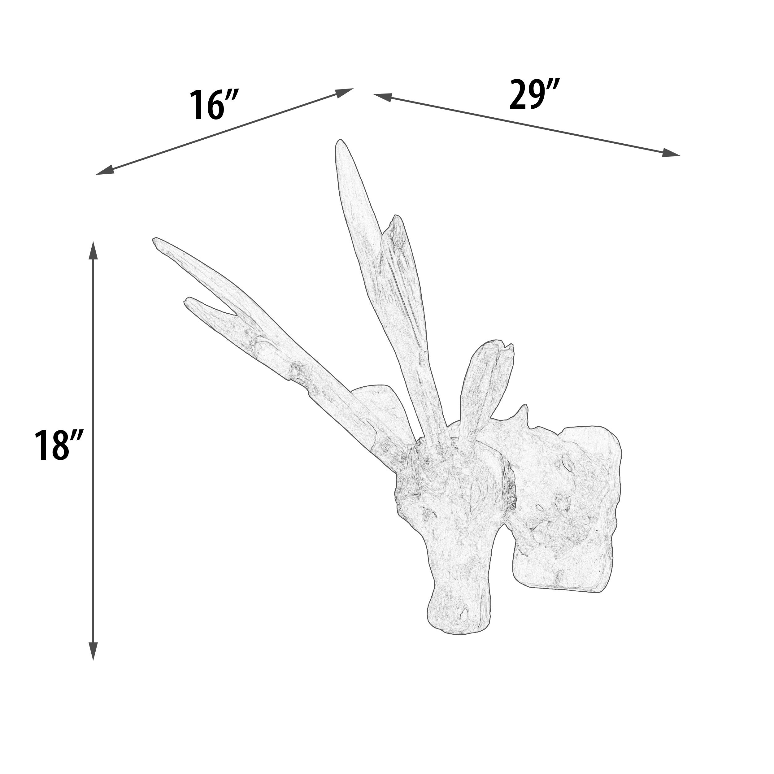 This handcrafted Teak Deer Head Trophy Mount offers a unique and sustainable take on traditional trophy decor. Each piece is meticulously carved from all-natural teak wood, renowned for its durability and rich grain, making it as enduring as it is beautiful. With overall dimensions of approximately 12 inches in width, 17 inches in depth, and a striking 29 inches in height, it commands attention in any space it adorns. No two mounts are the same, thanks to the individual characteristics of the wood and the artisan's handiwork, ensuring that your piece is a one-of-a-kind work of art. The approximate sizing speaks to its handcrafted nature, with each sculpture's presence slightly varied in form but consistent in its impact. Designed with convenience in mind, the back of this trophy mount features a keyhole hanger for easy installation, allowing you to bring a touch of the wild into your home in an ethical and aesthetically pleasing way. Please note, mounting hardware is not included. This teak deer head mount merges rustic charm with eco-conscious artistry, ideal for those looking to infuse their home with a piece that's both conversational and conservation minded.