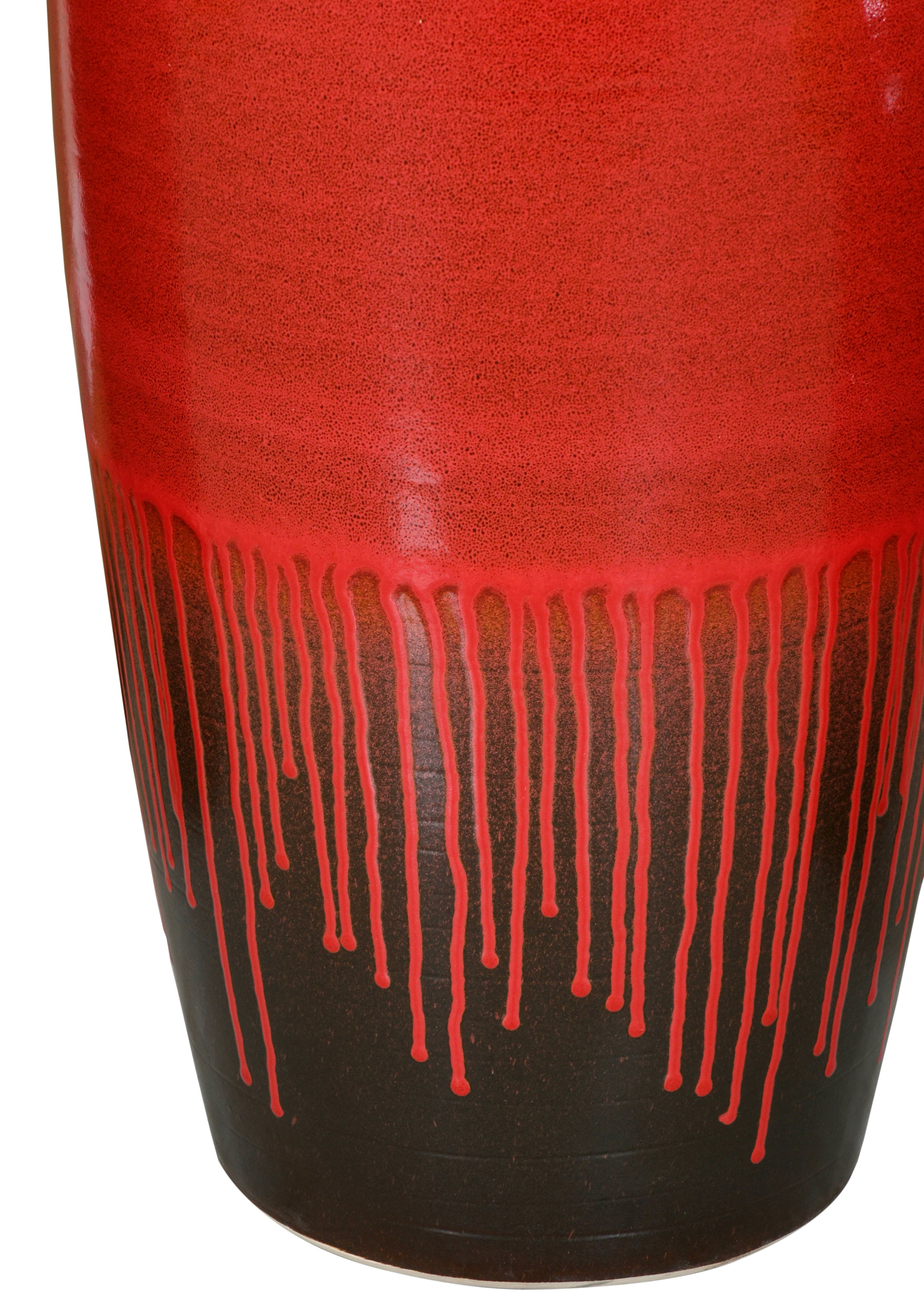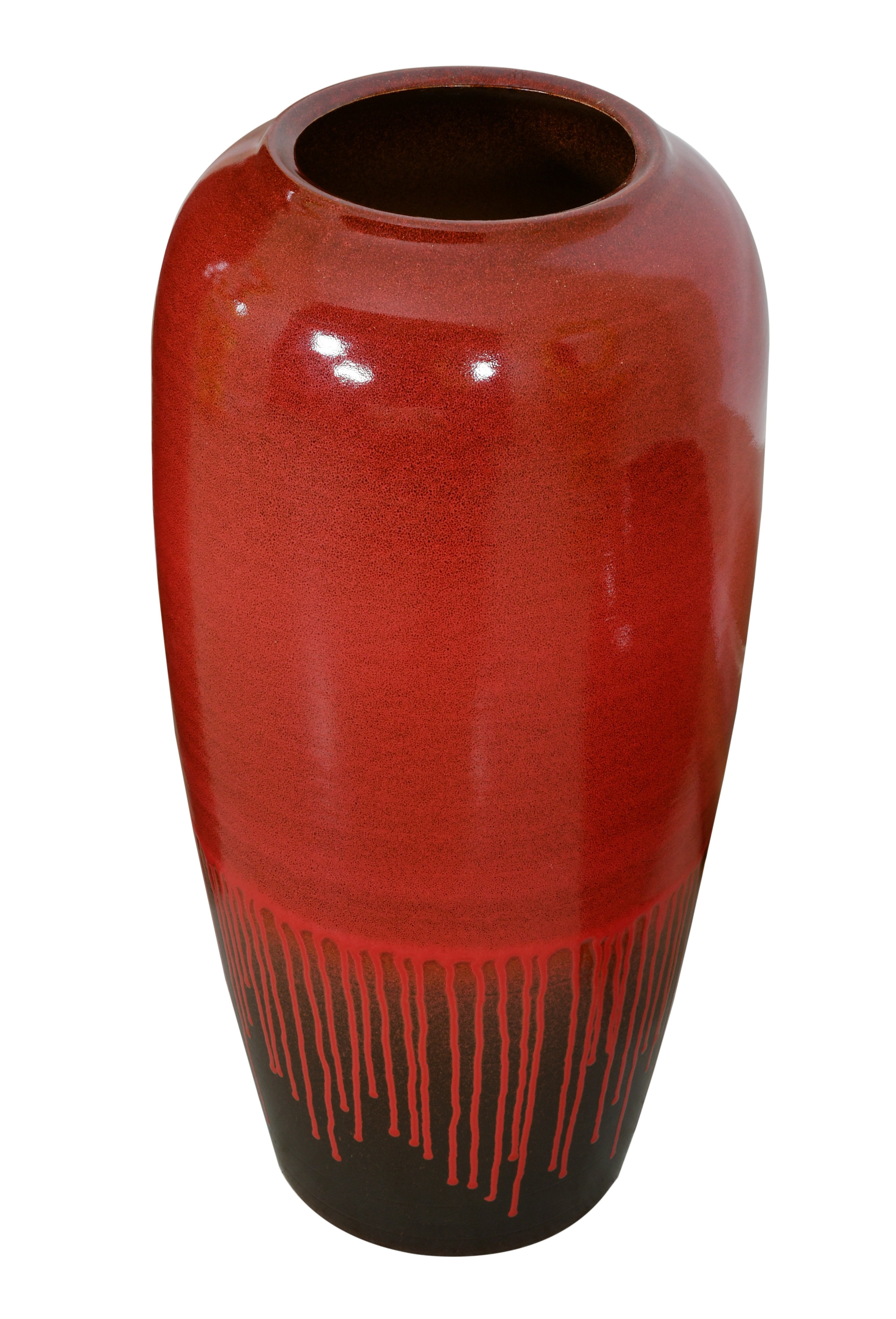 Our Adobe Red Medium Vase is 31.5 Inch Tall. It is a Medium-sized Hand Cast Ceramic Vase fired in special large Kilns reaching heats in excess of 1000 degrees that dries the clay. The firing also makes the vases strong and waterproof. The varying finer finish glazing techniques used create the beautiful effects you see. This series features a very deep Adobe Red to Adobe Earthen Brown Glazing Tones emanating from the base. Sold separately it is often ordered with the matching other sized Adobe Vases to create interesting 3 pce sets with heights from 19.5 to 42 Inches Tall. Adobe Collection is offered exclusively by AFD Home. No Assembly Required