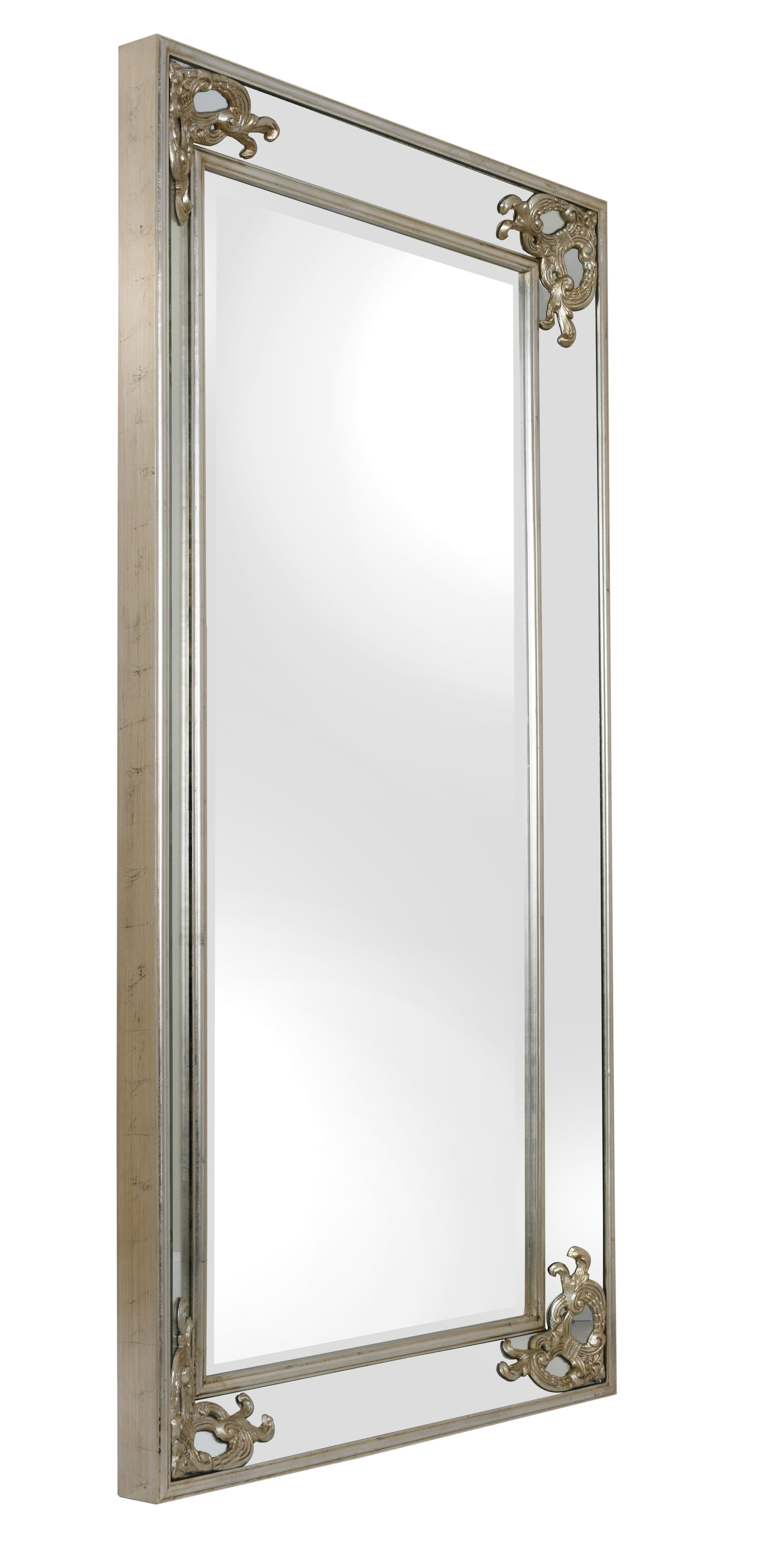 The Monte Carlo Silver Vertical Mirror offered is a timeless and elegant design. The mirror style allows for a variety of applications. Perfectly shaped for use as a leaning mirror or wall mounted either Vertically or Horizontal with the customer friendly provided and mounted hooks on back. The master framers created this opulent design with depth and angles that allow the scooped side to reflect off the beveled mirror panels. Then hand finished in a silver leaf with soft glazing. The mirror has a deep projection from the wall and is created to offer a larger scale. The mirror comes with a 1 and 1/4 Inch bevel mirror installed. Another quality mirror from Timeless Reflections a division of AFD Home. The Monte Carlo Vertical Mirror is also available in Gold leaf finishing for the style of your life! No Assembly Required!