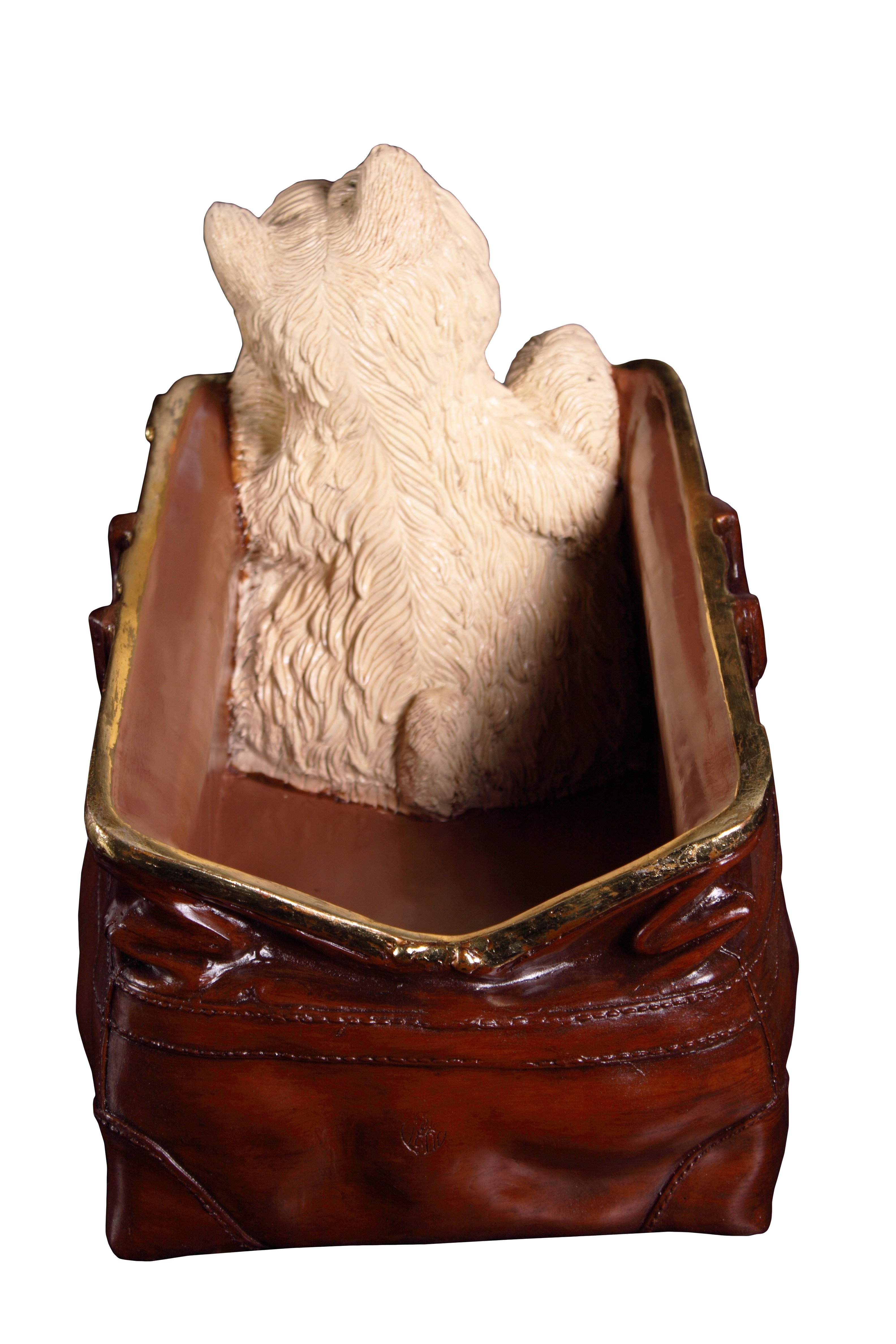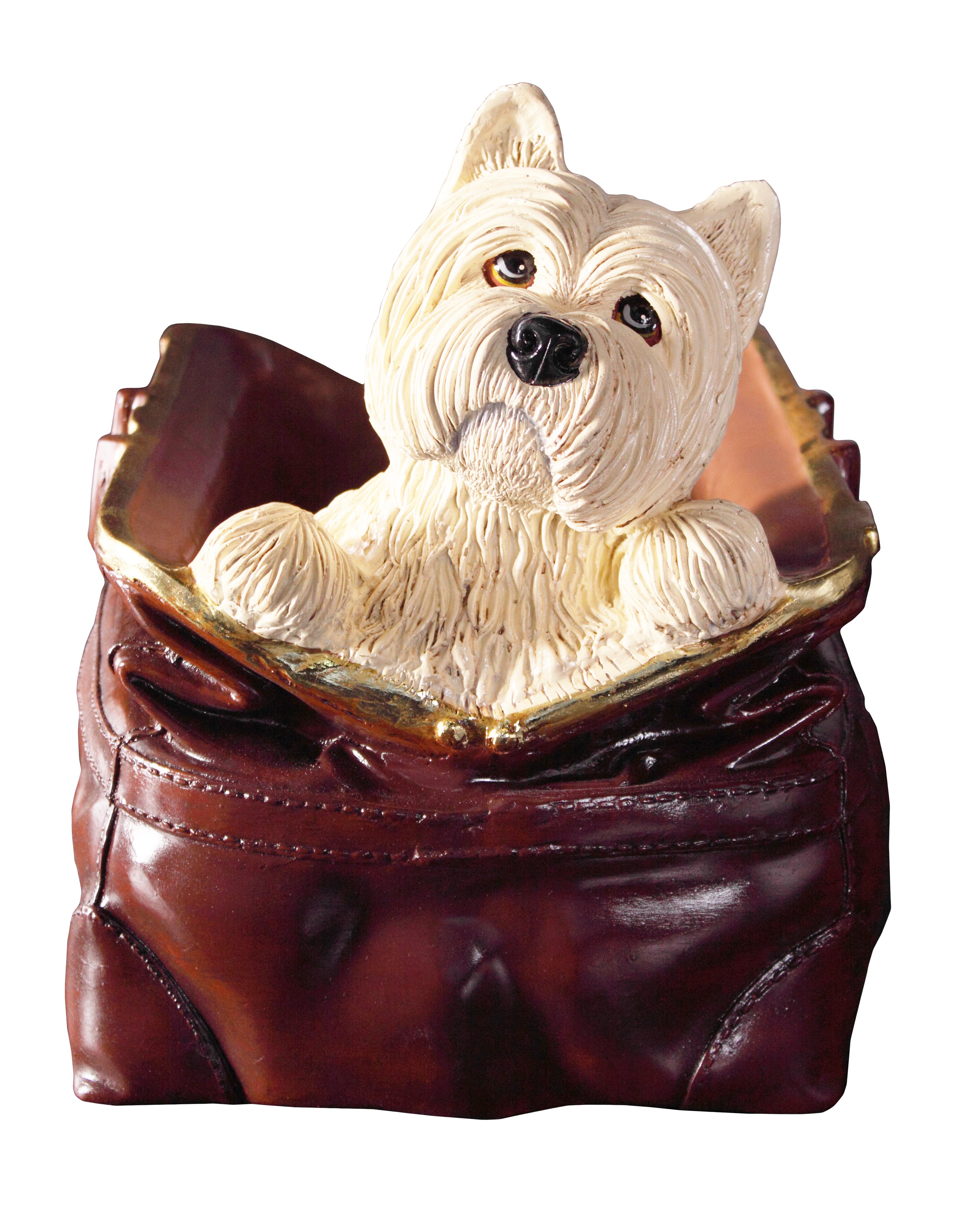 The Scottie In Bag from Whimsical Treasures brings an exclusive style that will enhance your design area featuring lovable white terrier gazing from inside bag. This multicolored decorative accessory from the More Functional decor Collection will provide