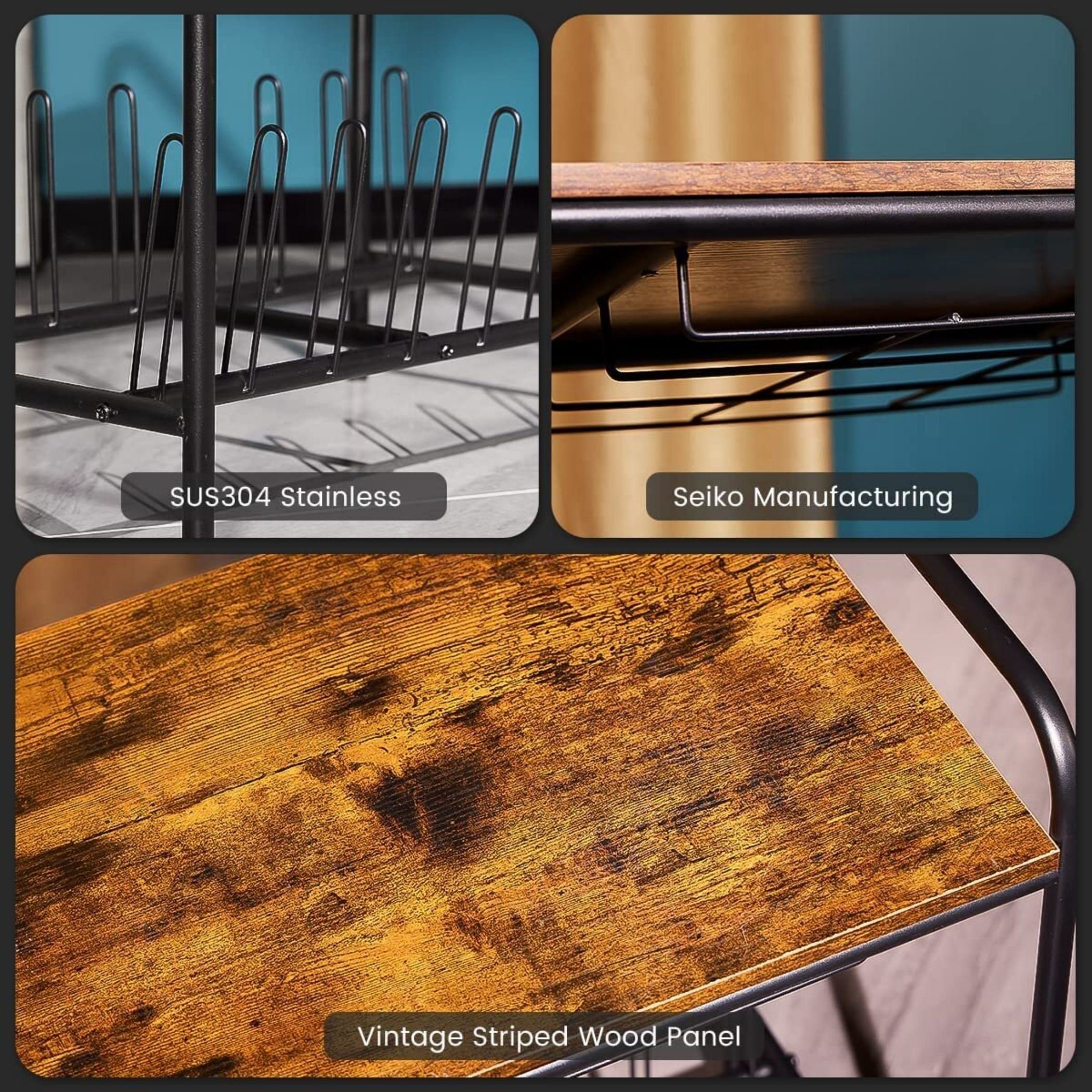 Record Player Stand - Sturdy, Durable and Beautiful Upgraded and Enhanced Alloy steel S304L. 30% more corrosion resistance, plus 50% more rust resistance with glossy baking paint, the record player stand made of high quality material will show your unique taste. With 16 slots record player stand vintage and wood style turntable desk for home and office file storage, providing a clean and modern look and convenience. Record Rack Size Volume The record player table measures approximately 21.6*25.6*13.8 inches. It can hold the record player stably on the first level, while it can store no less than 80 vinyl records on the second level.