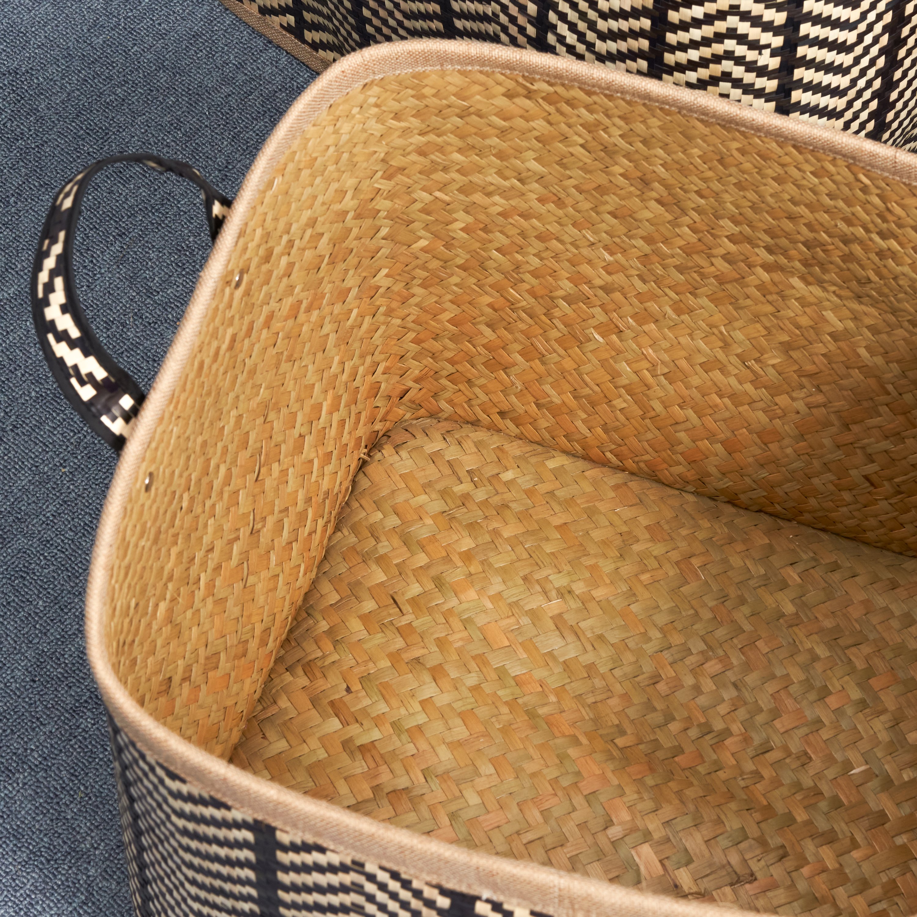 Crafted from durable palm leaf, the baskets feature a timeless woven design in black and brown hues, adding a touch of natural elegance to your decor