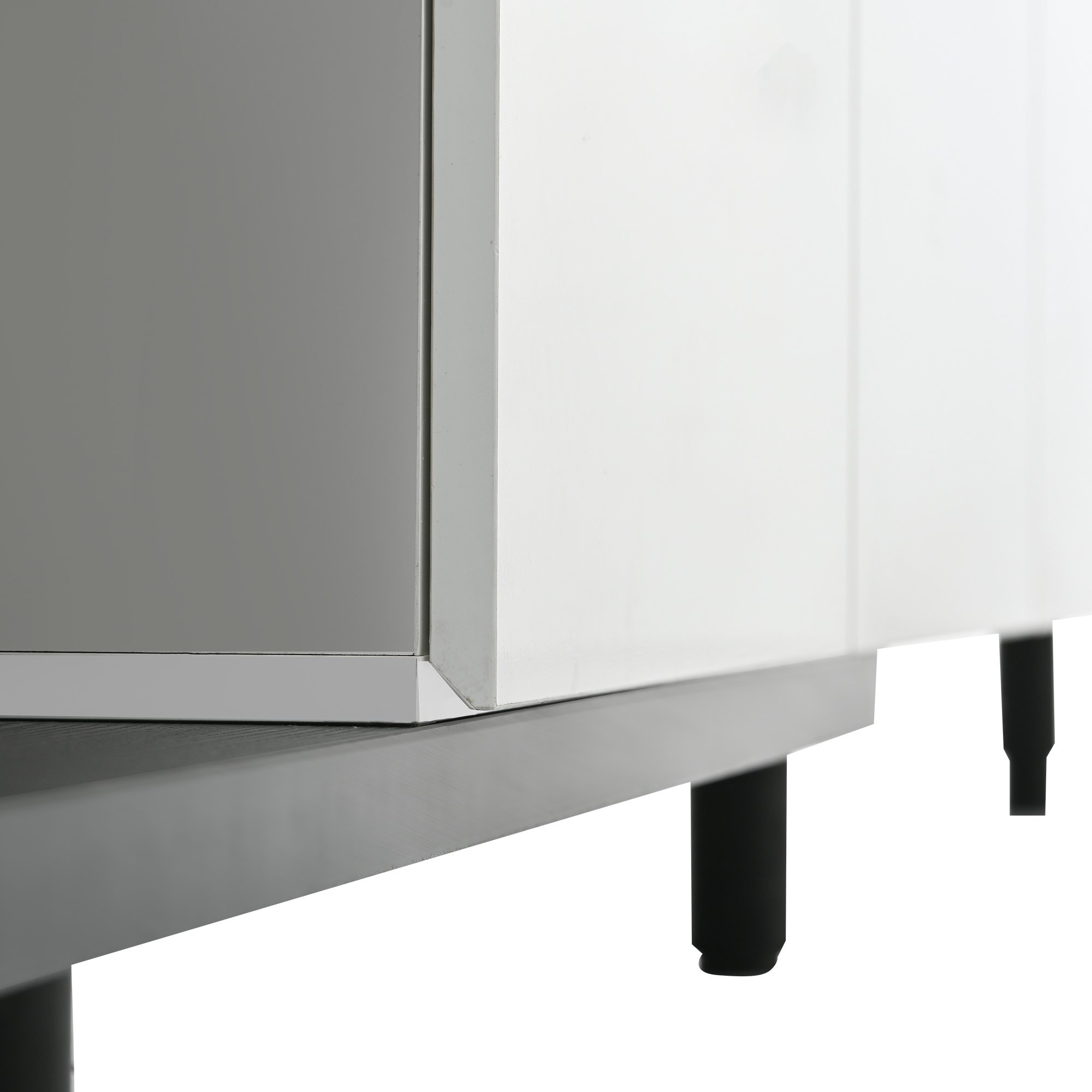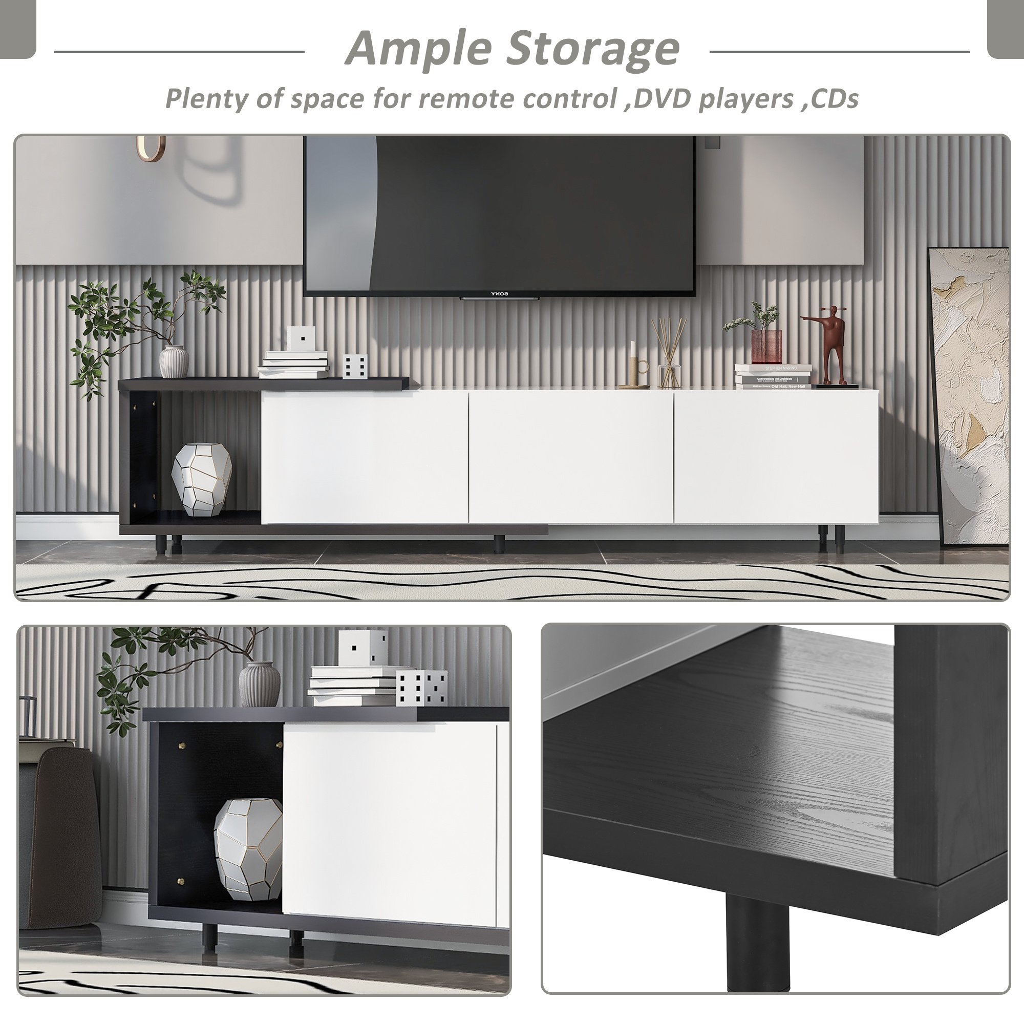 This TV stand brings elegance and modernity to your living room. Particle board with a clean-lined silhouette in black & white lacquered hue fits into your existing arrangement easily. Designed with a smooth and wear-resistant tabletop, this functional TV stand provides plenty of space for the TV screen and decorative accents, while it features 3 large drawers for internal storage. And offers extra and flexible storage space. Stylish, functional, and high-quality, this TV stand is a wise choice for your home furnishings needs.