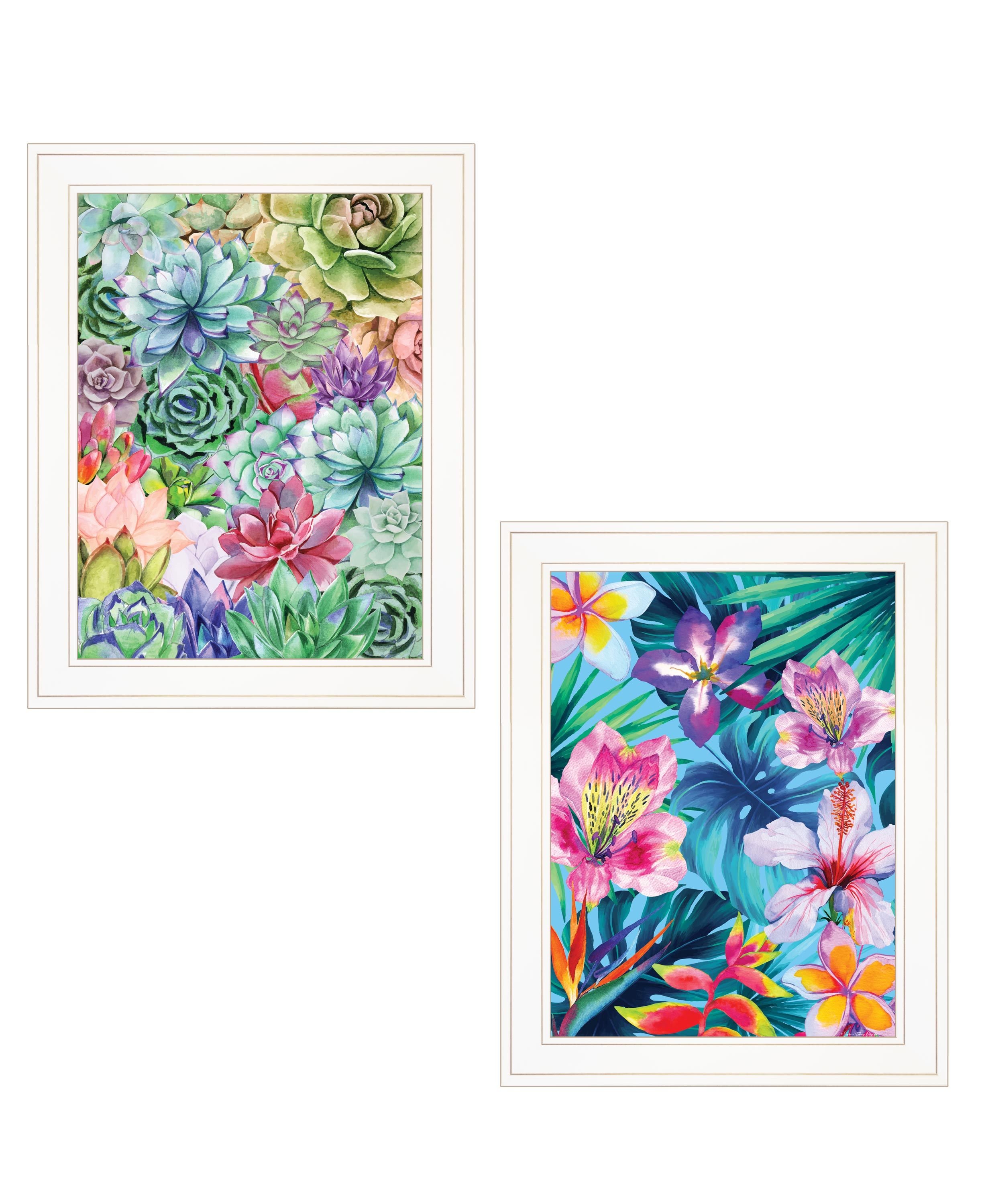"Succulents Paradise & Tropical Flowers" 2-Piece Vignette by Stellar Design Studio, Ready to Hang Framed Print, White Frame