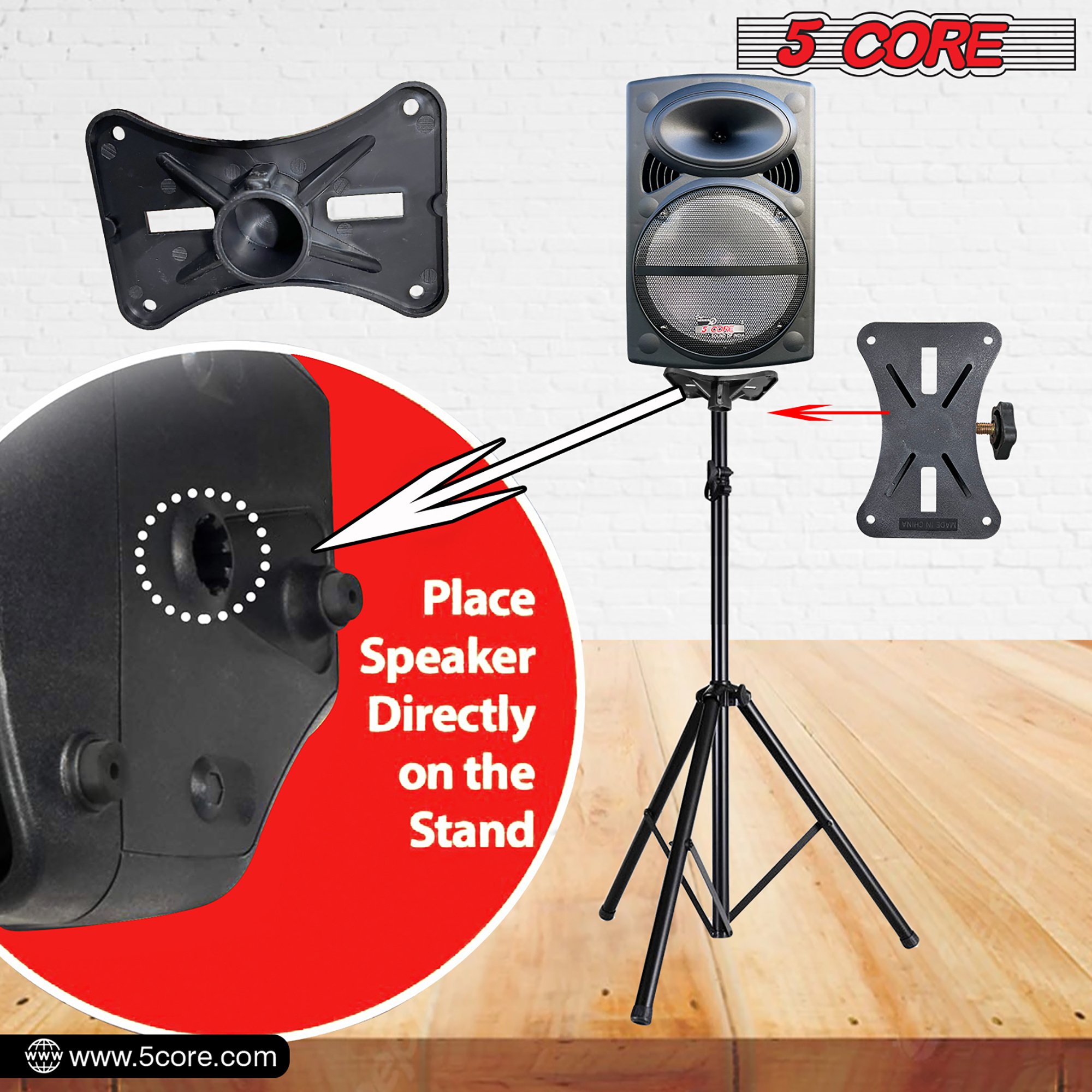 The tripod floor stand design with anti slip rubber pads on the legs offer 132 lbs capacity, can support large speakers.