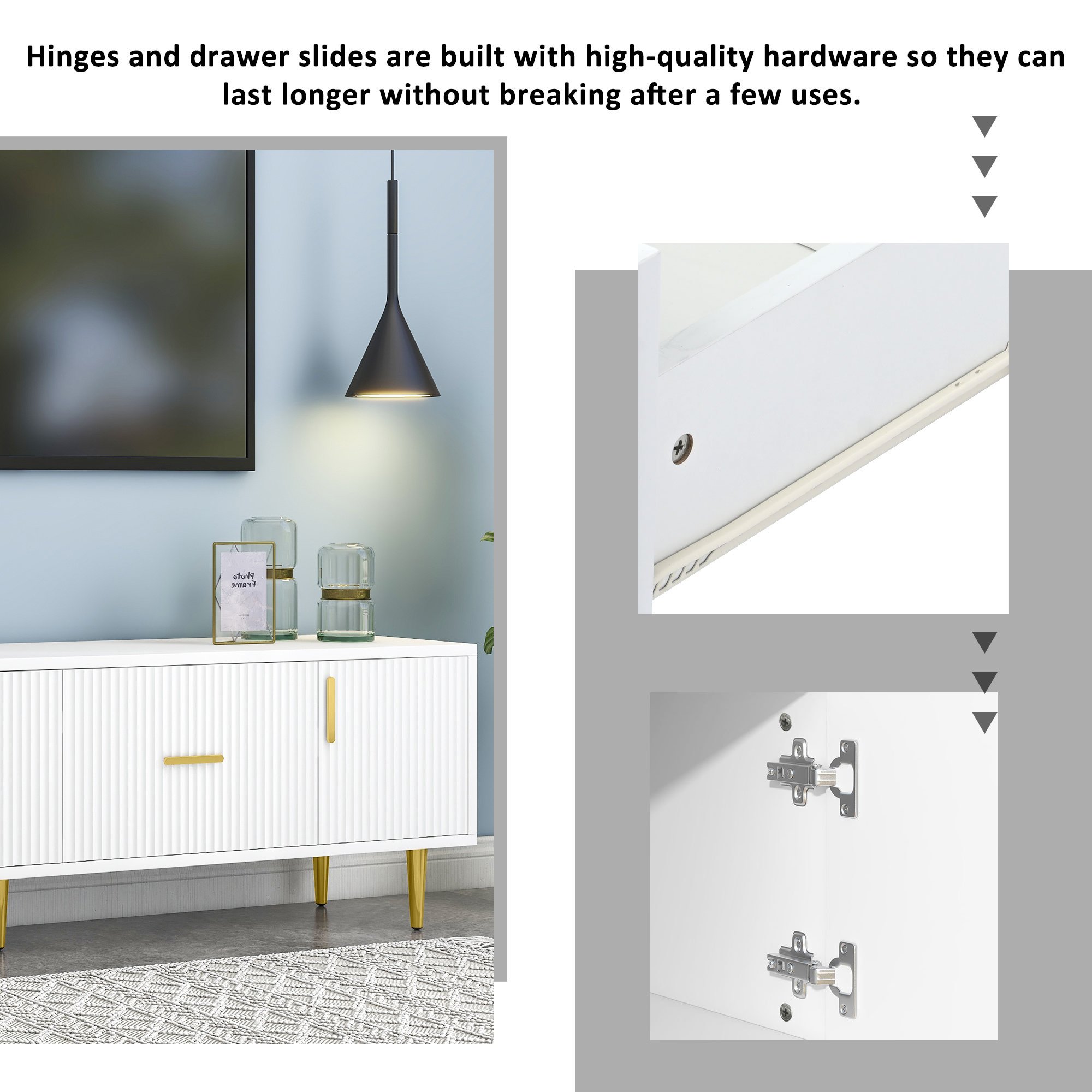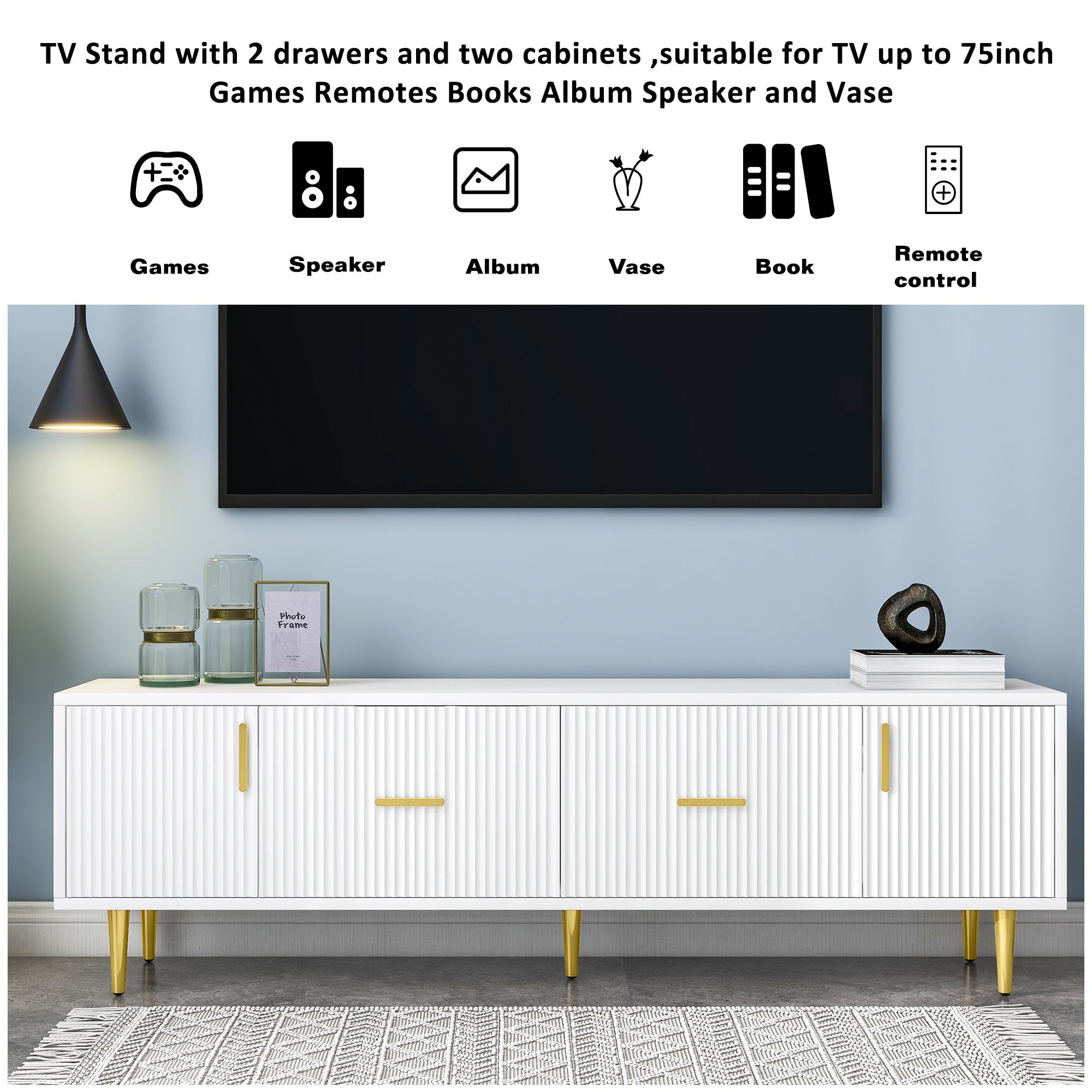 2.[STYLISH] Featuring a sleek design and 5 champagne legs, this contemporary TV Stand adds a modern and fresh touch to your living room.