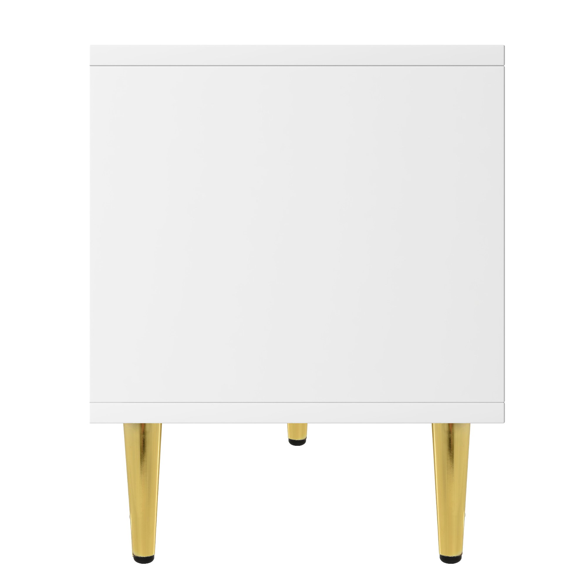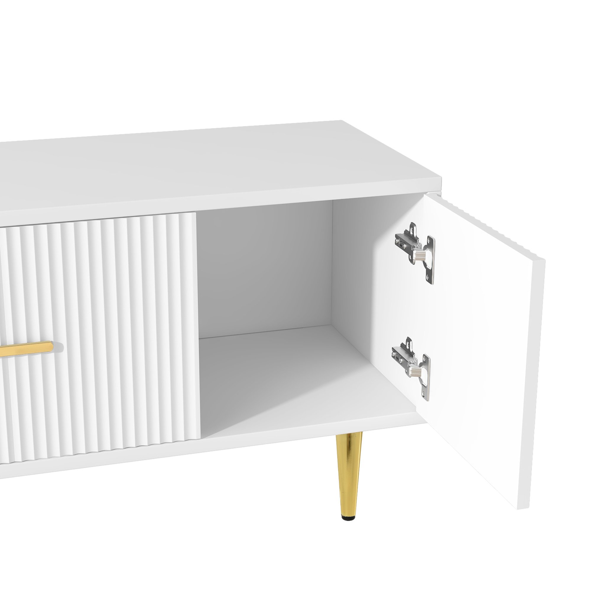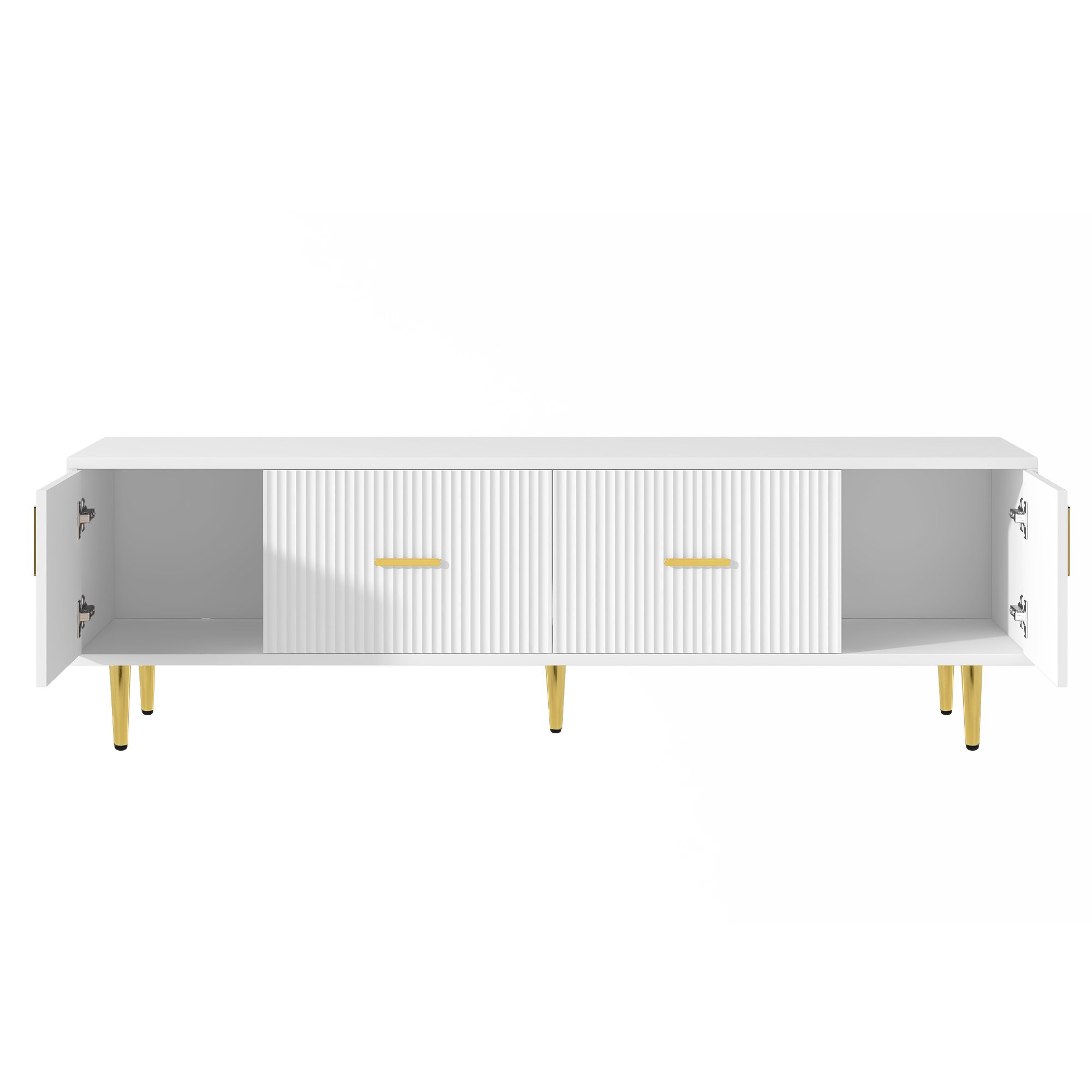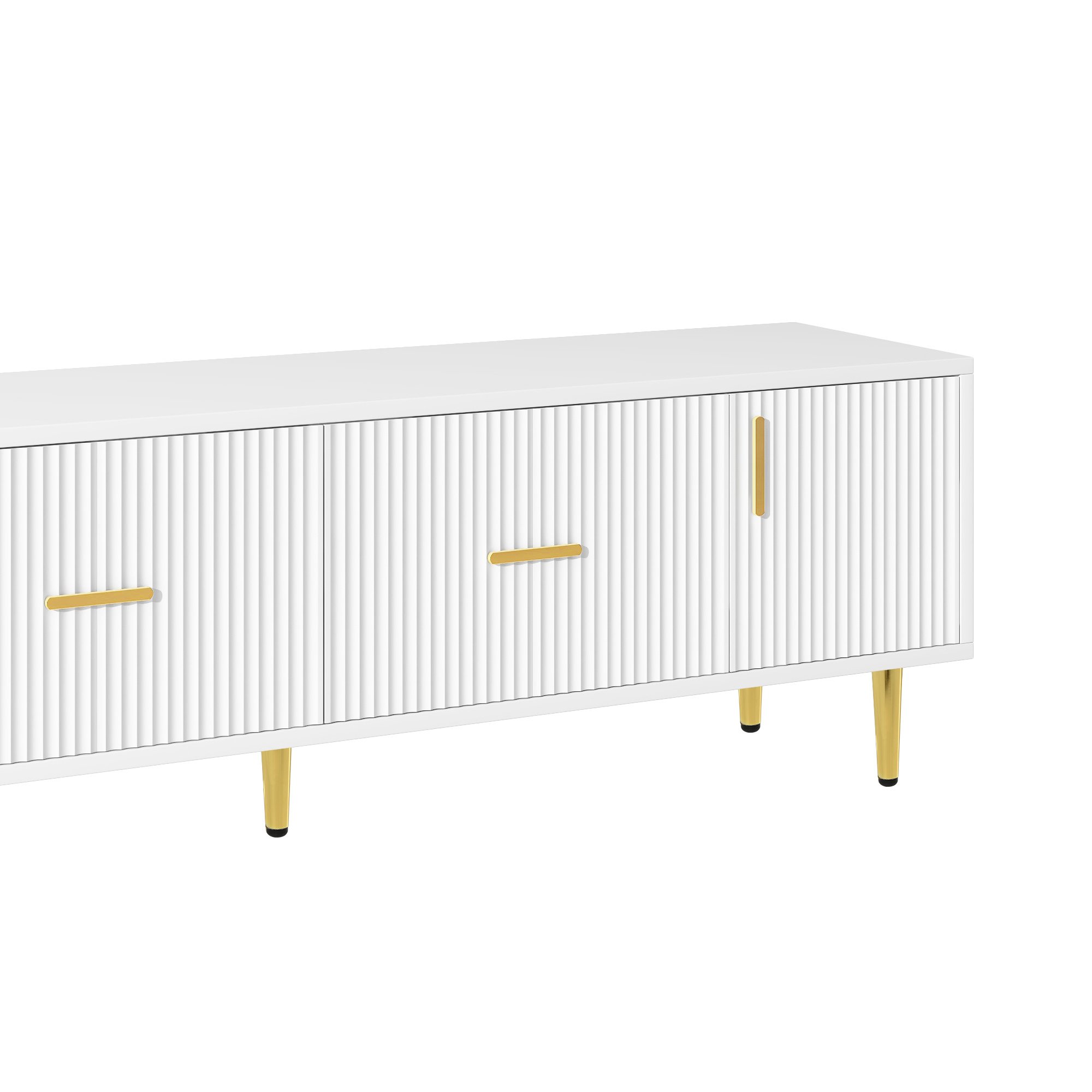 This modern TV Stand has been designed with both style and practicality in mind. Made of high quality materials and featuring a contemporary design and 5 champagne legs, this durable TV Stand offers plenty of room and storage for your television equipment, media, and other accessories. It is easy to install, and perfect for any living room or entertainment center. Add a modern and fresh touch to your home with the stylishly designed TV Stand!